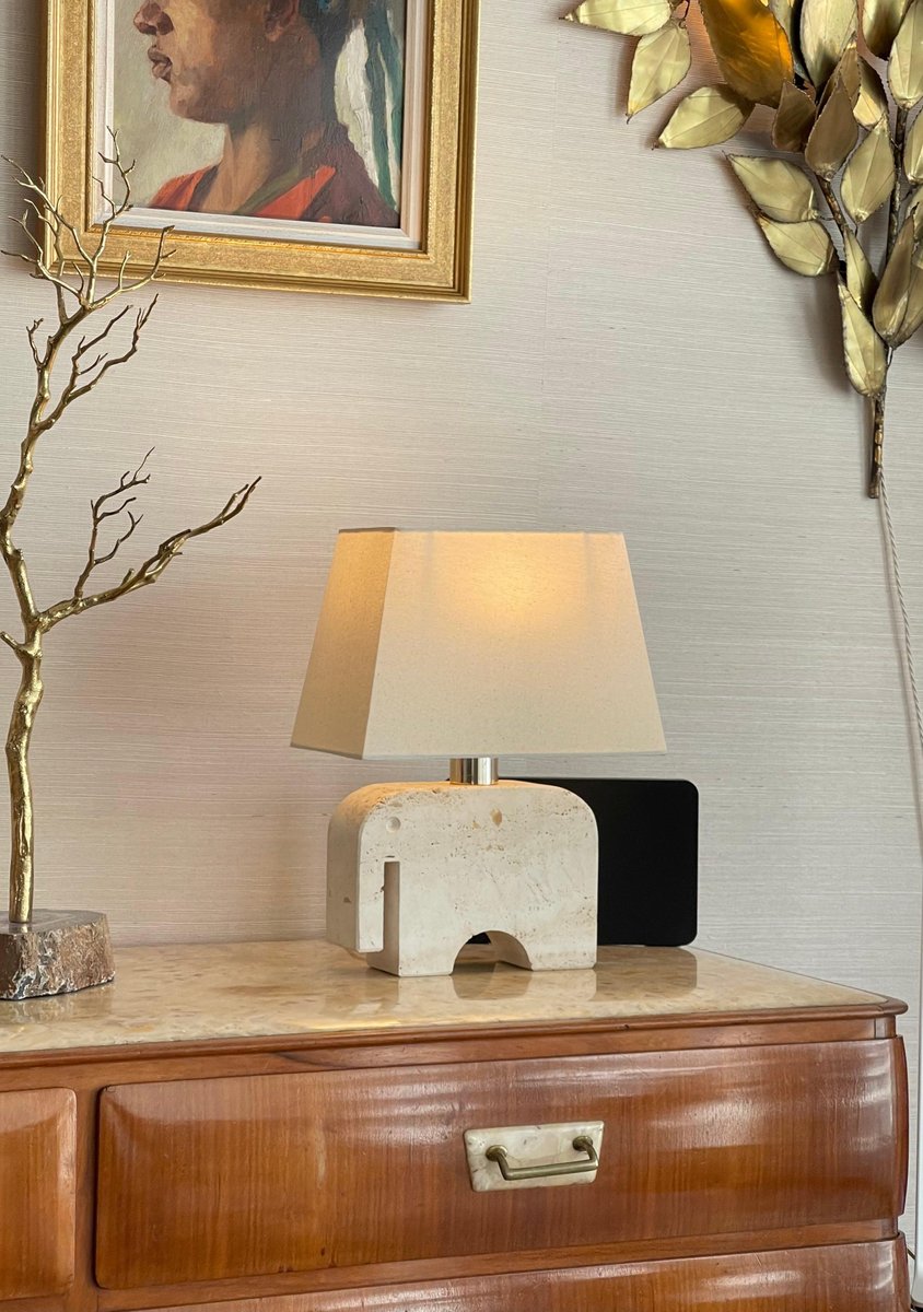 Vintage Italian Travertine Elephant Table Lamp by Mannelli Bros, 1970s