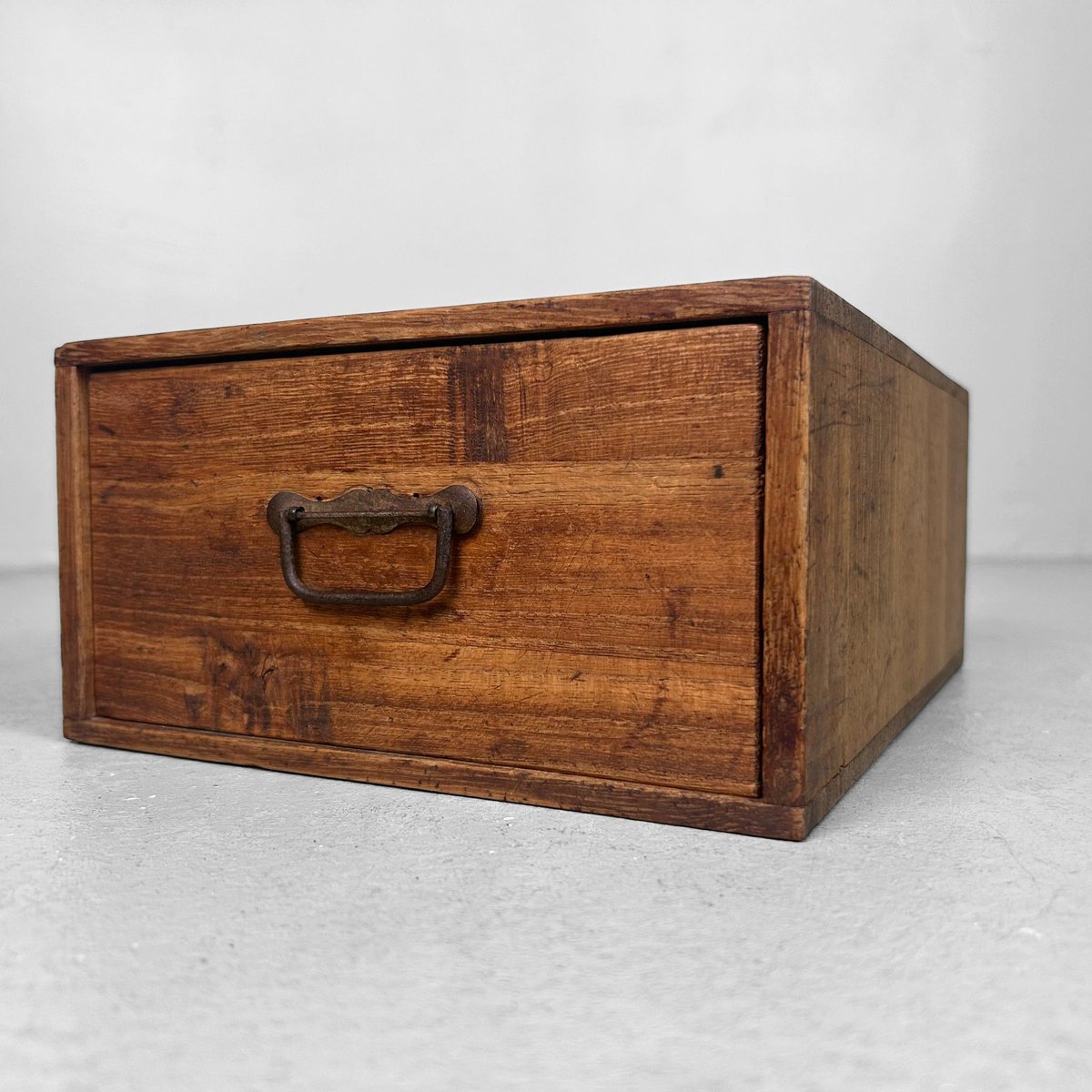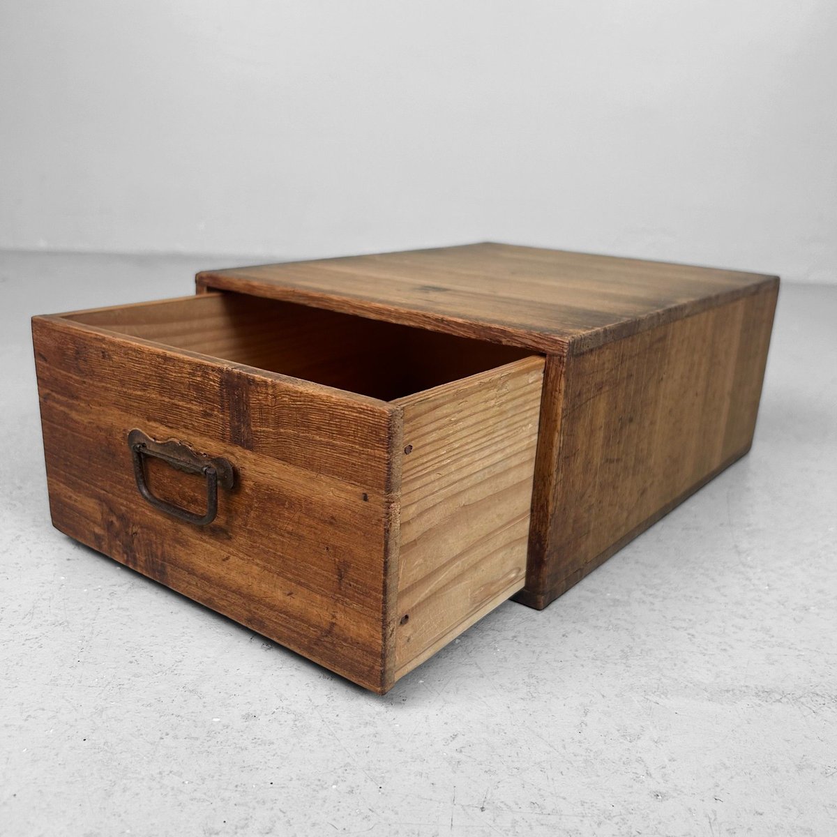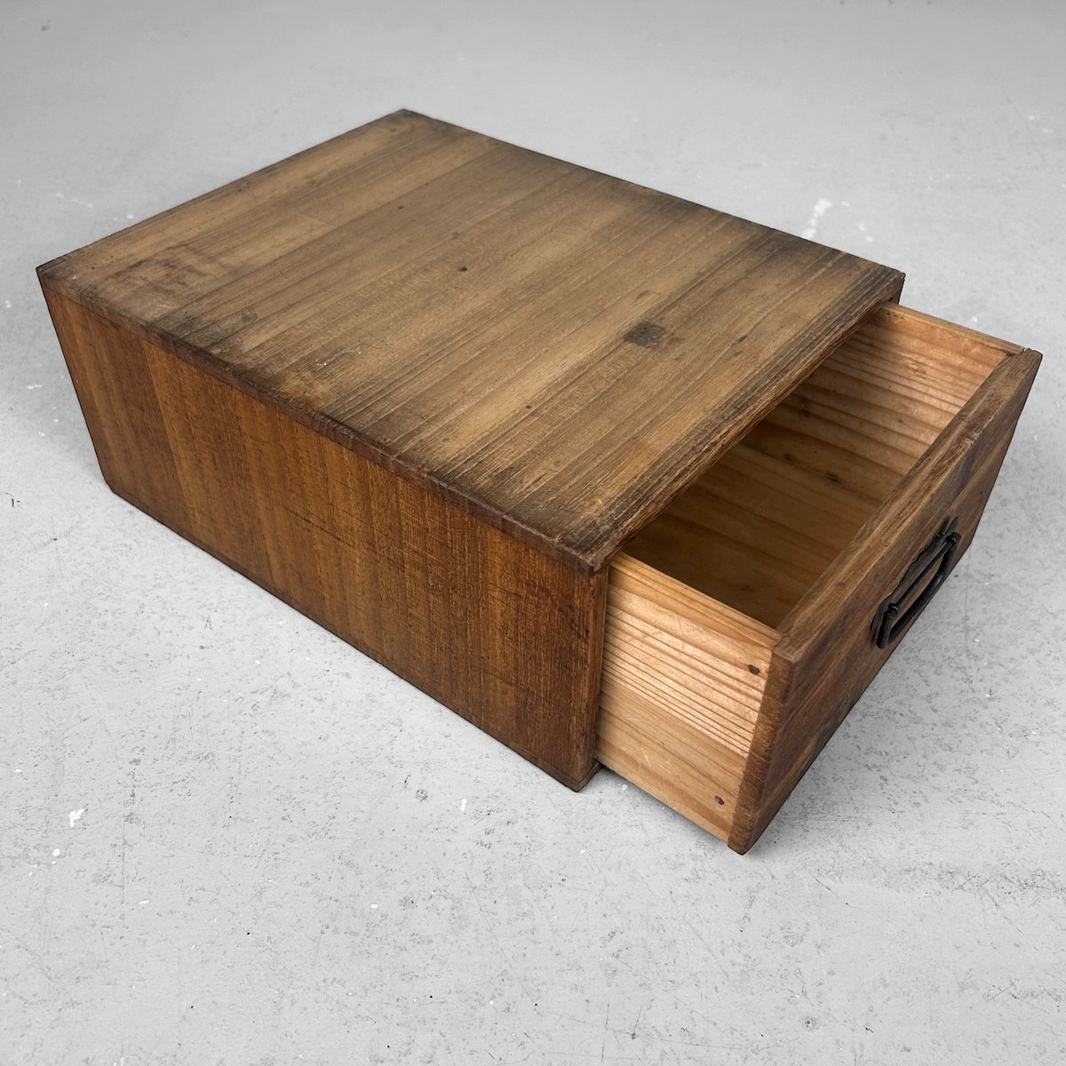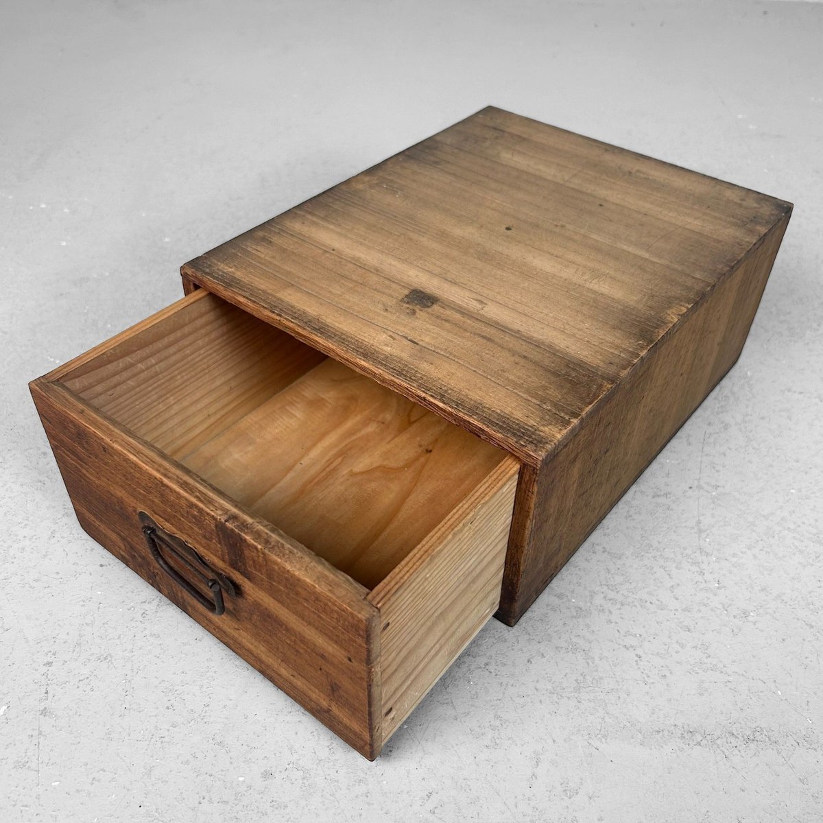 Vintage Japanese Wooden Storage Box with Drawer, 1930s