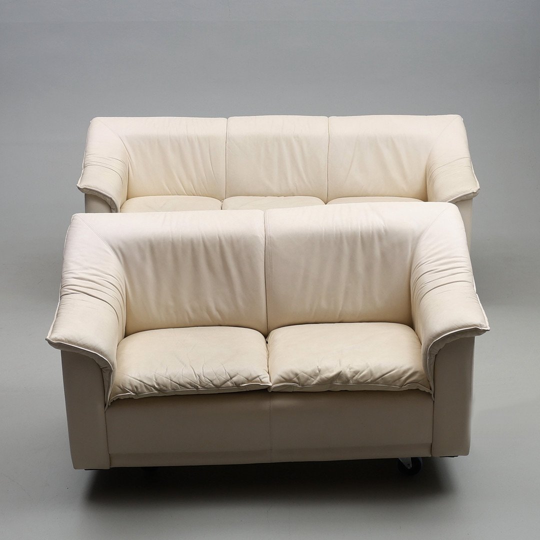 Vintage Leather Sofa Set, 1980s, Set of 2