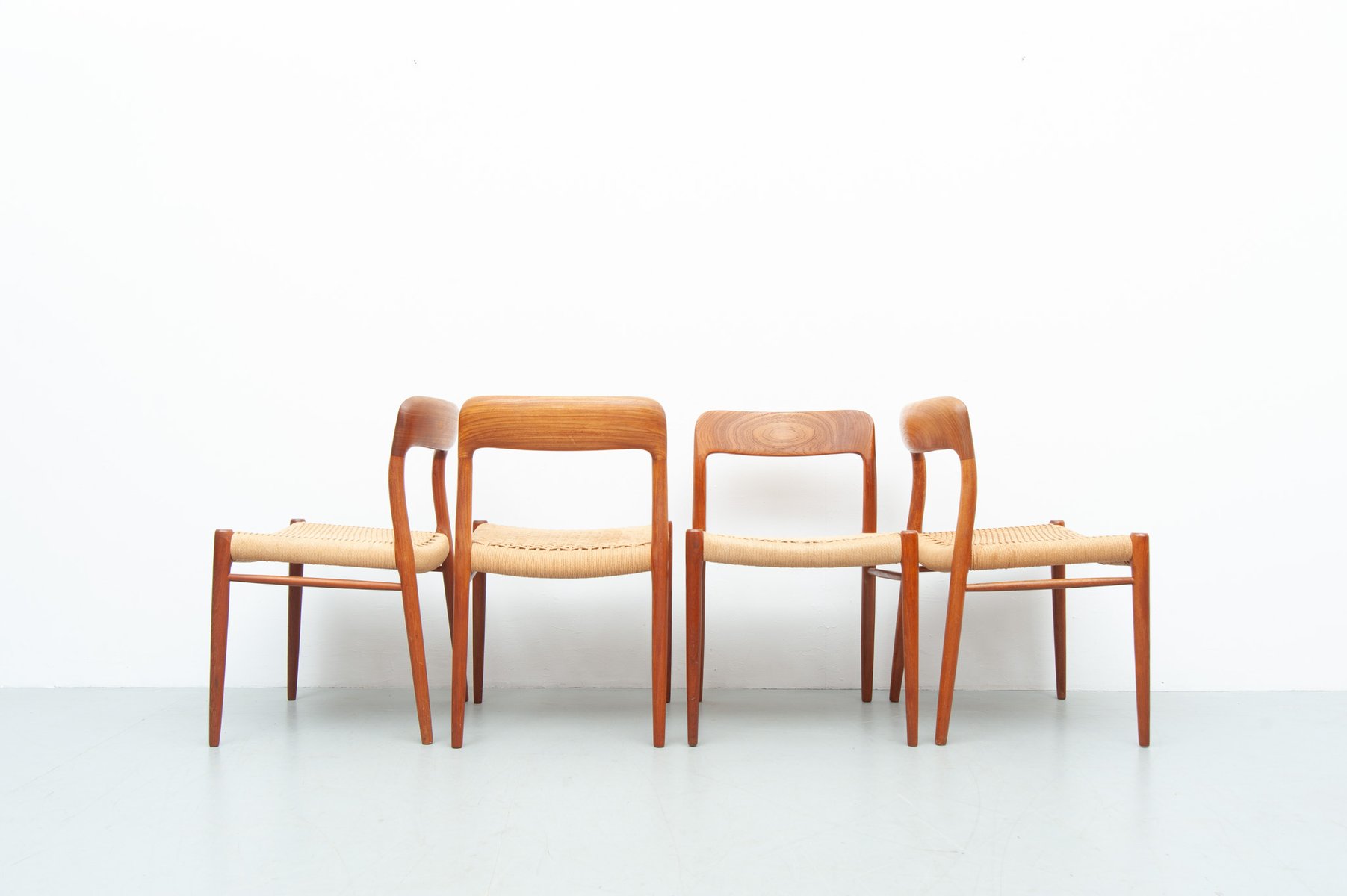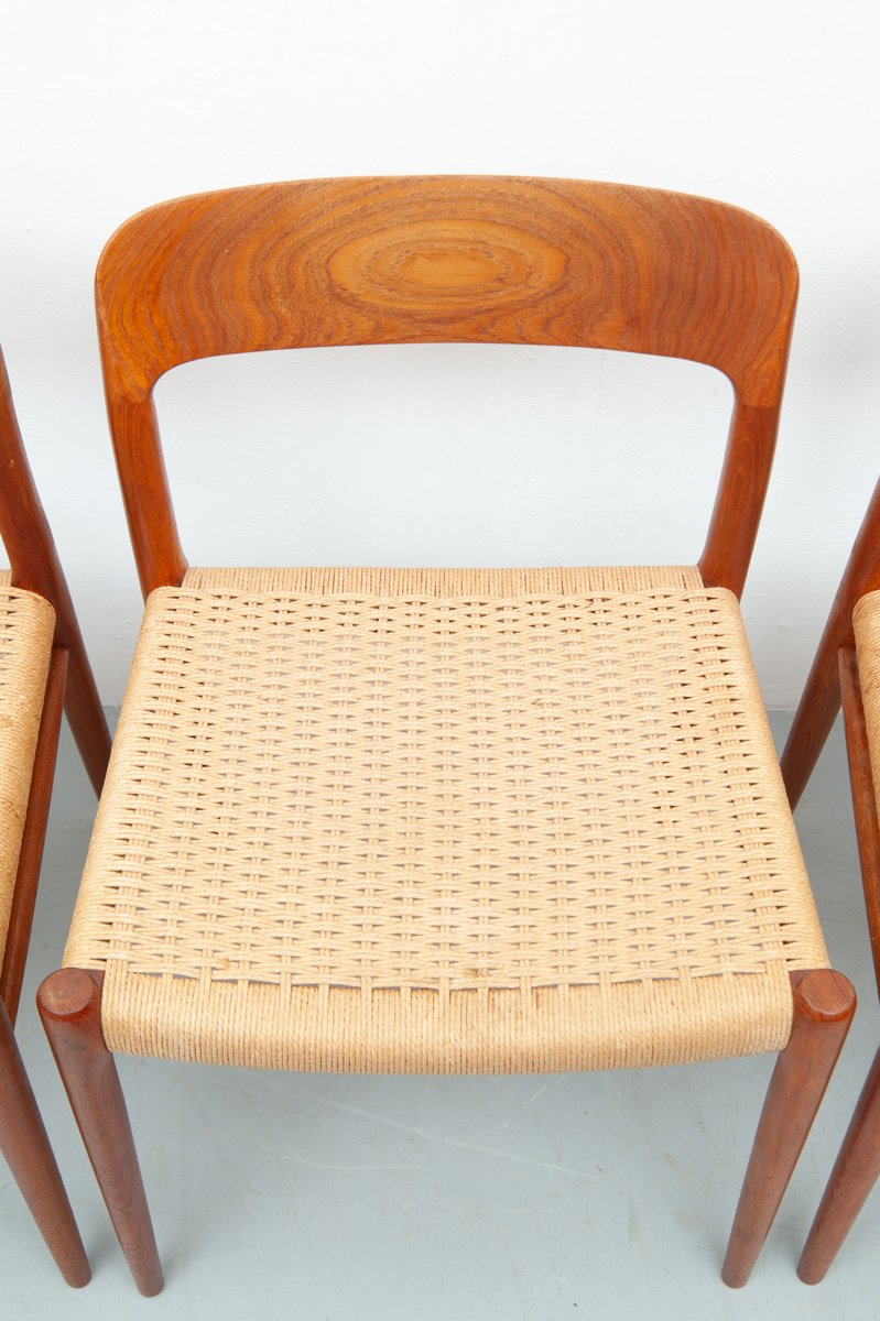 Vintage Model 75 Dining Chairs in Teak by Niels Otto Møller for J. L. Møller Møbelfabrik, 1950s, Set of 4