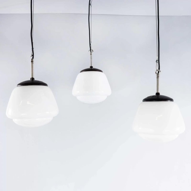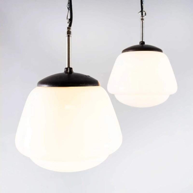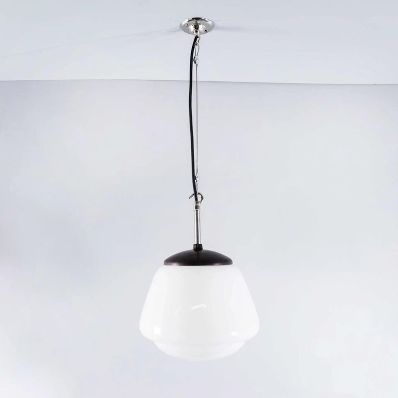 Vintage Mouth Blown Splayed Button Opaline Pendant Lamp, 1950s