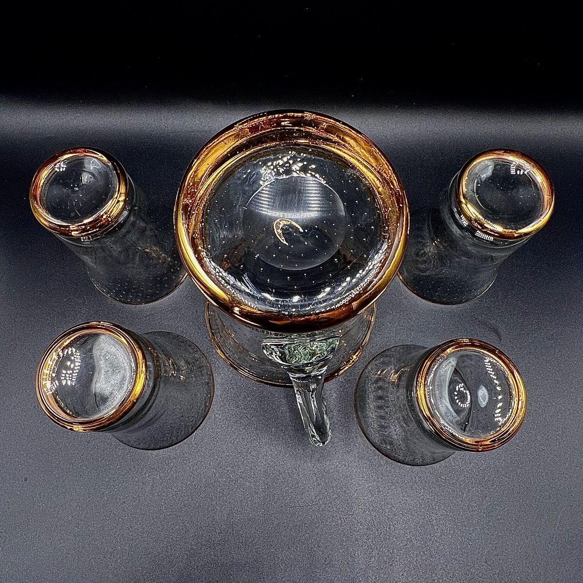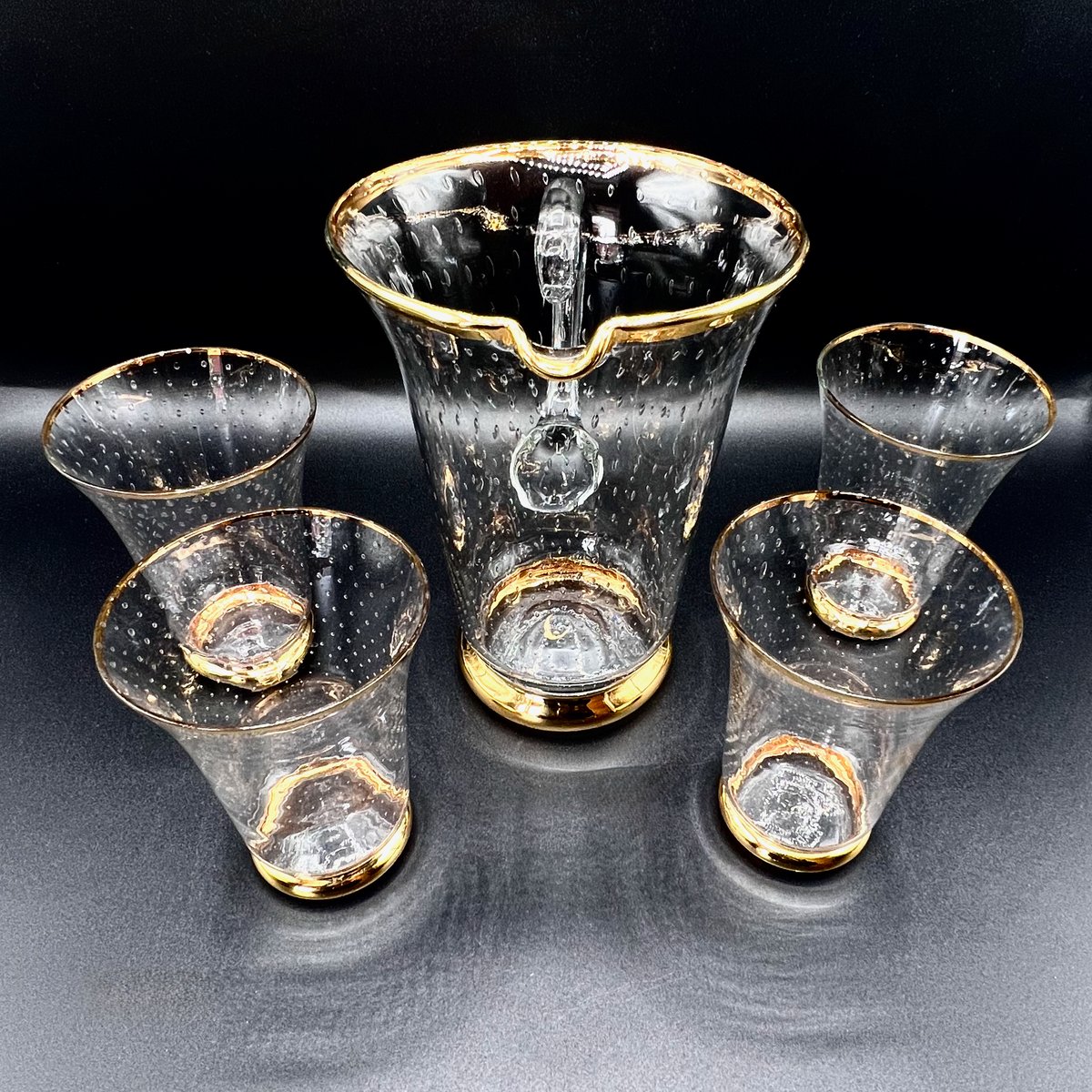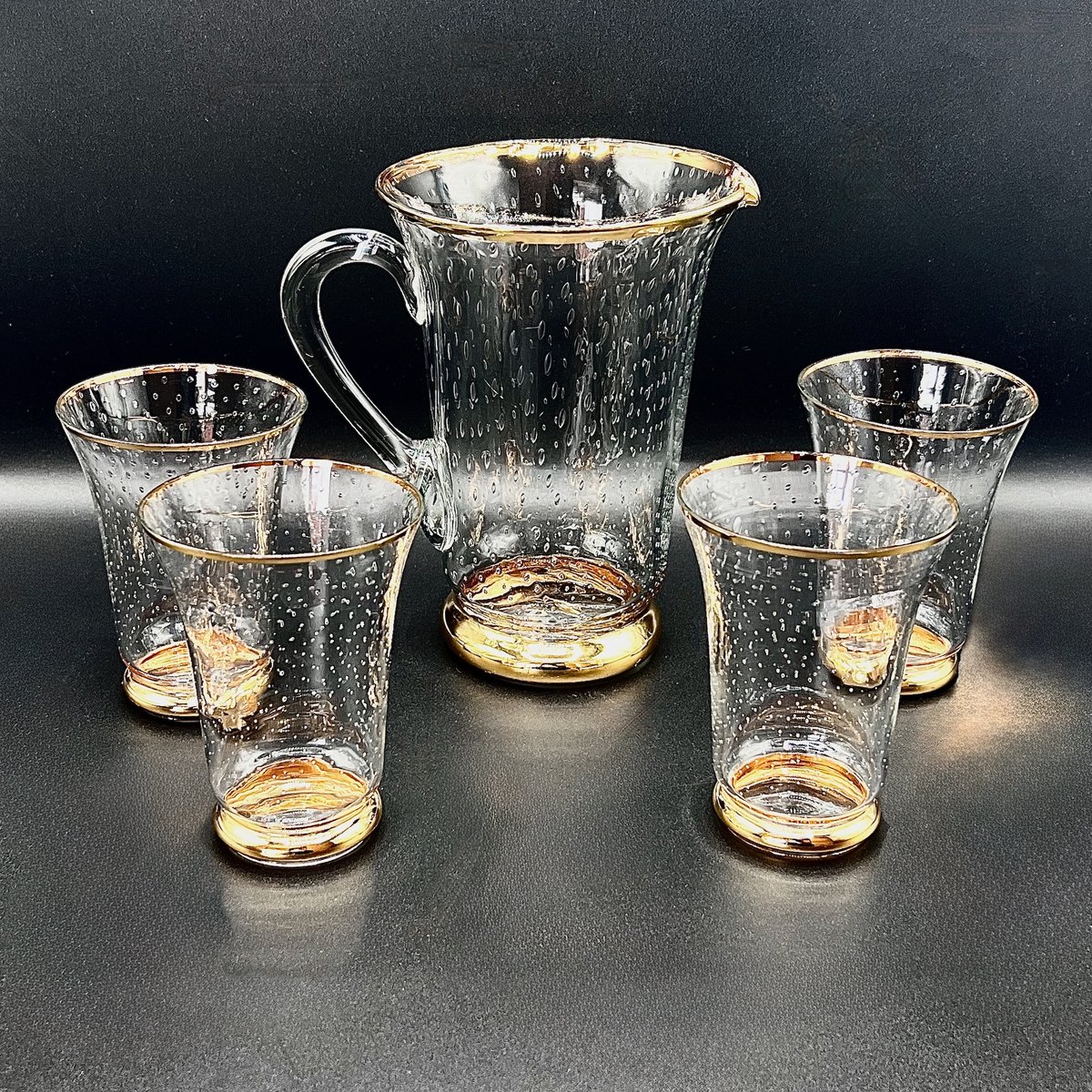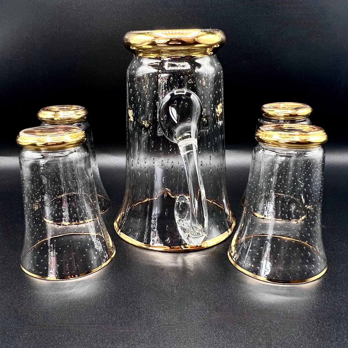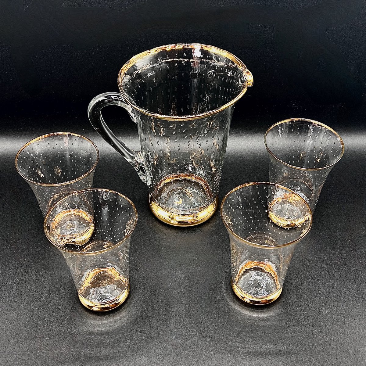 Vintage Murano Glass Lemonade Set with Bullicante Technique and Gold Trim, 1950s, Set of 5