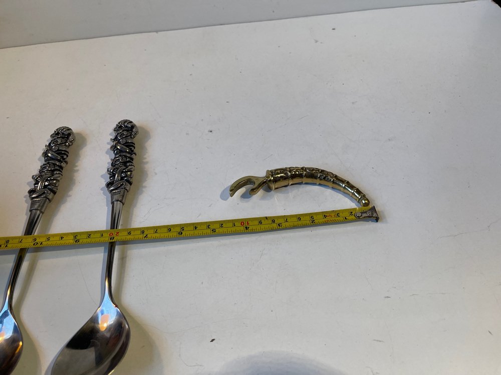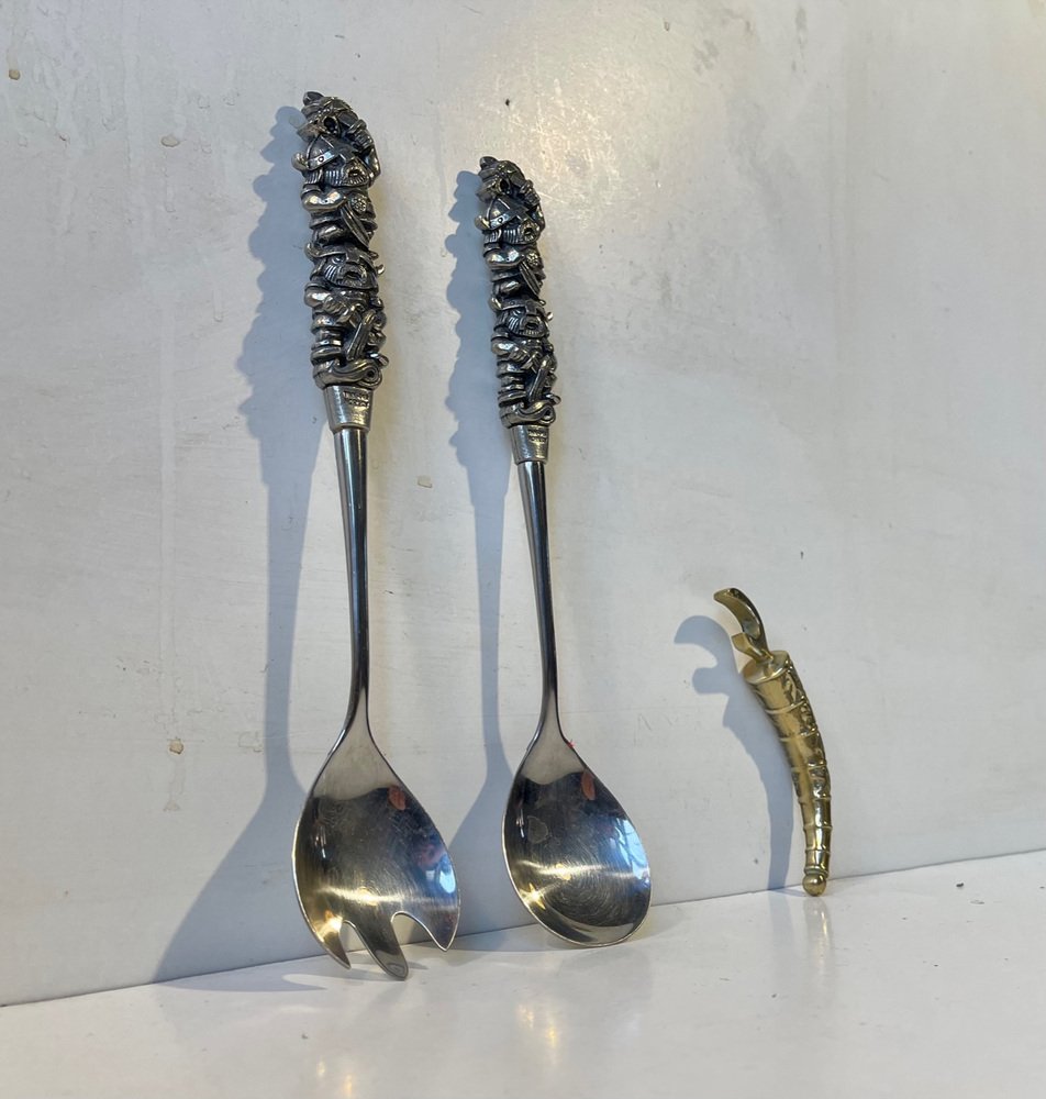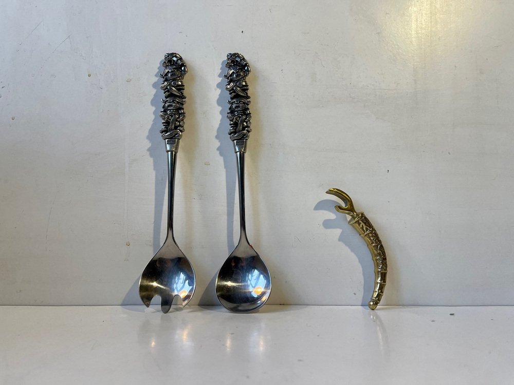 Vintage Norwegian Viking Salad Set and Bottle Opener by A. S. Tinn Per, 1970s, Set of 3
