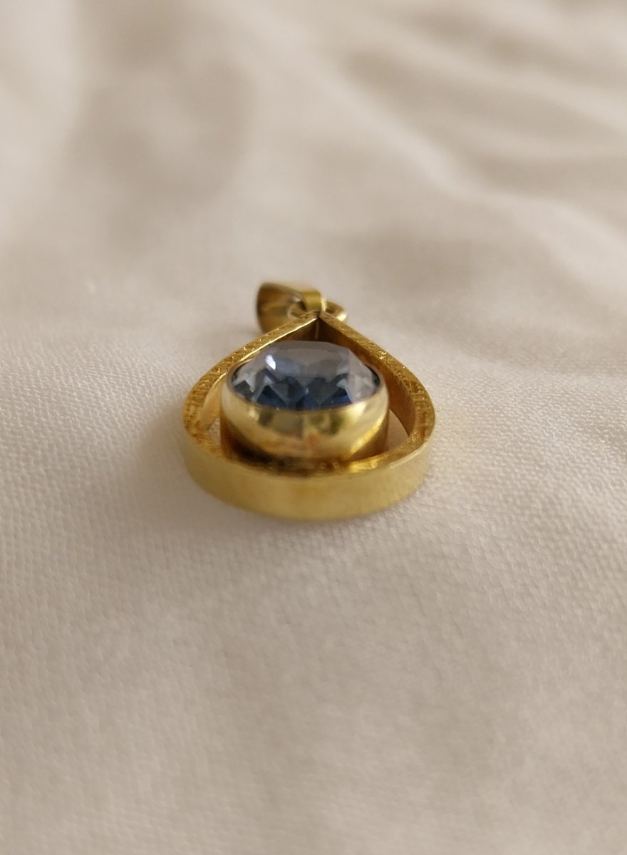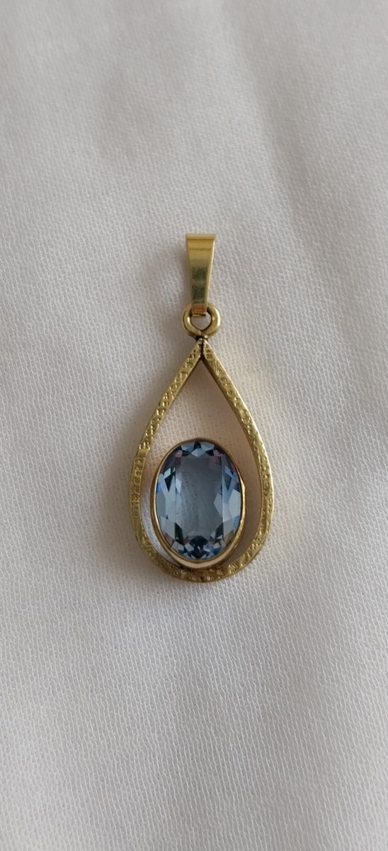Vintage Rolled 14 Karat Gold Pendant with Natural Topaz, 1960s