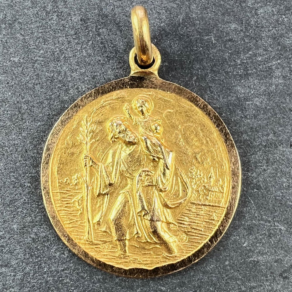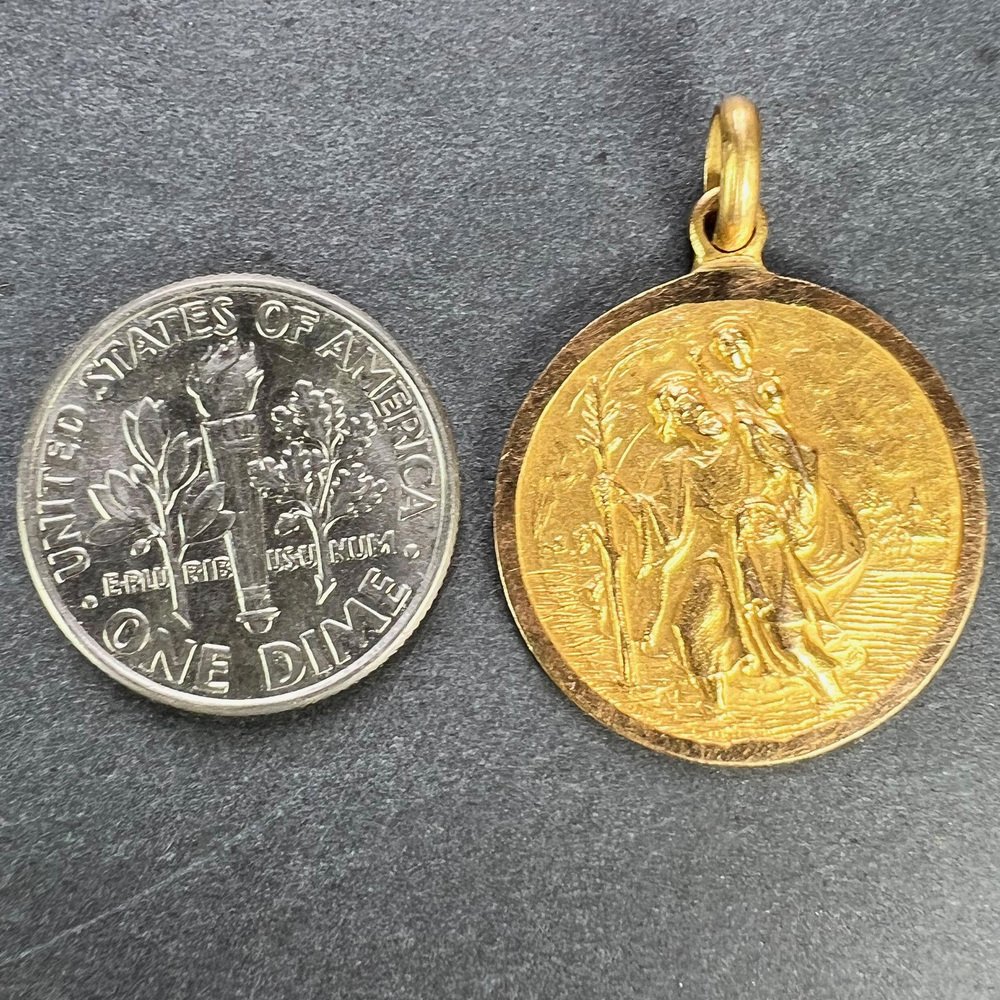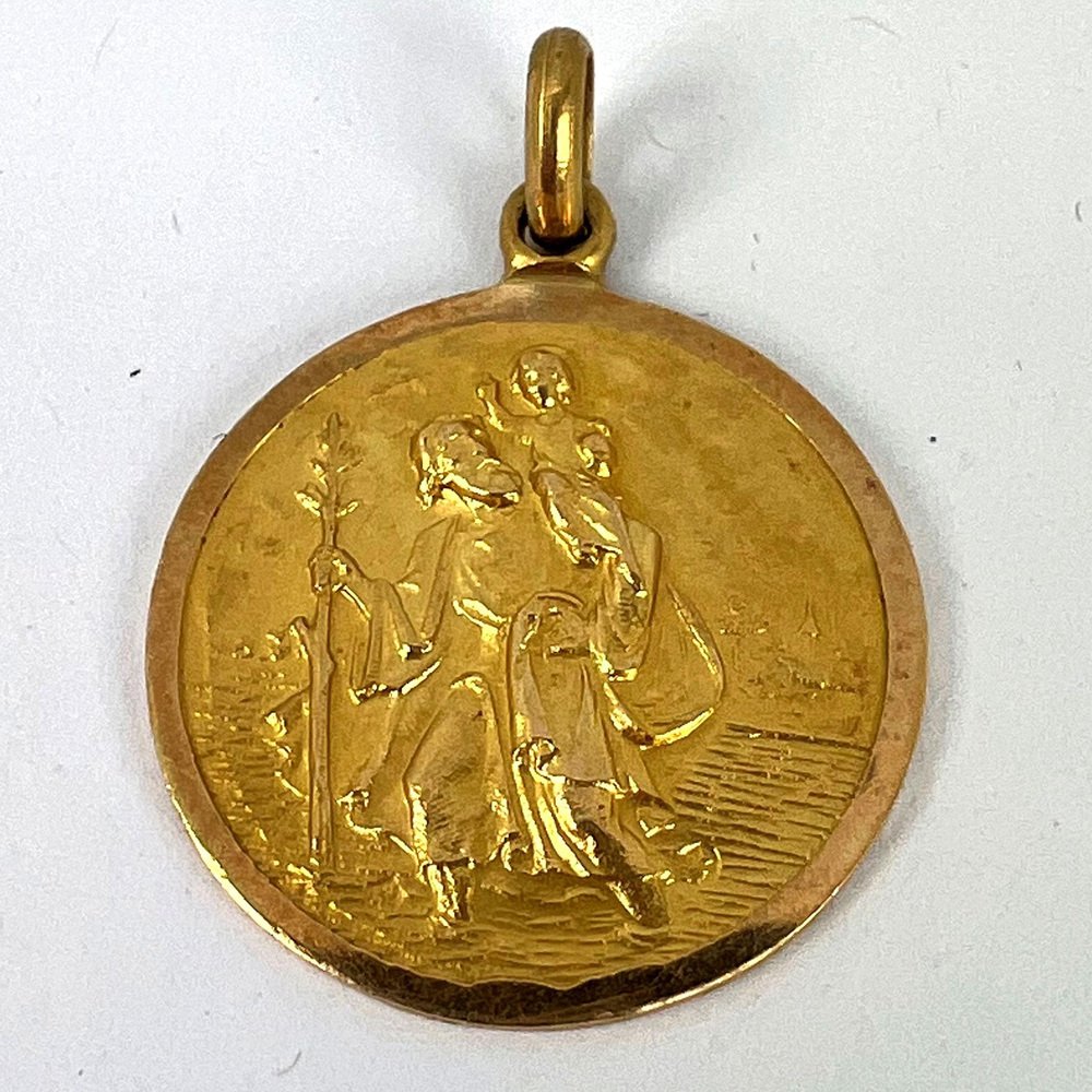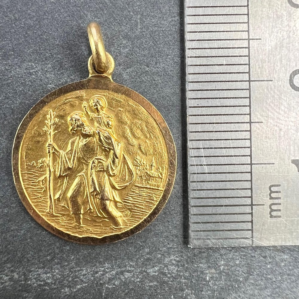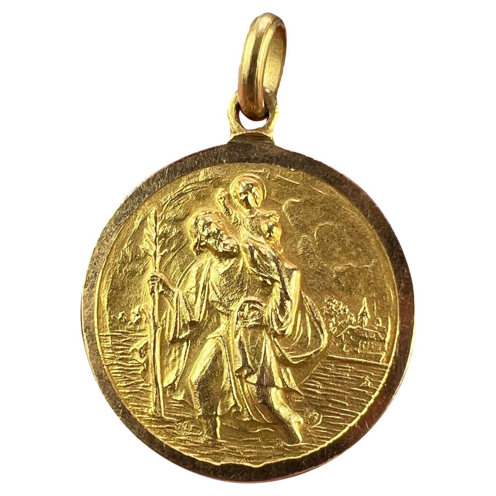 Vintage Saint Christopher 18k Yellow Gold Charm Pendant, 1950s