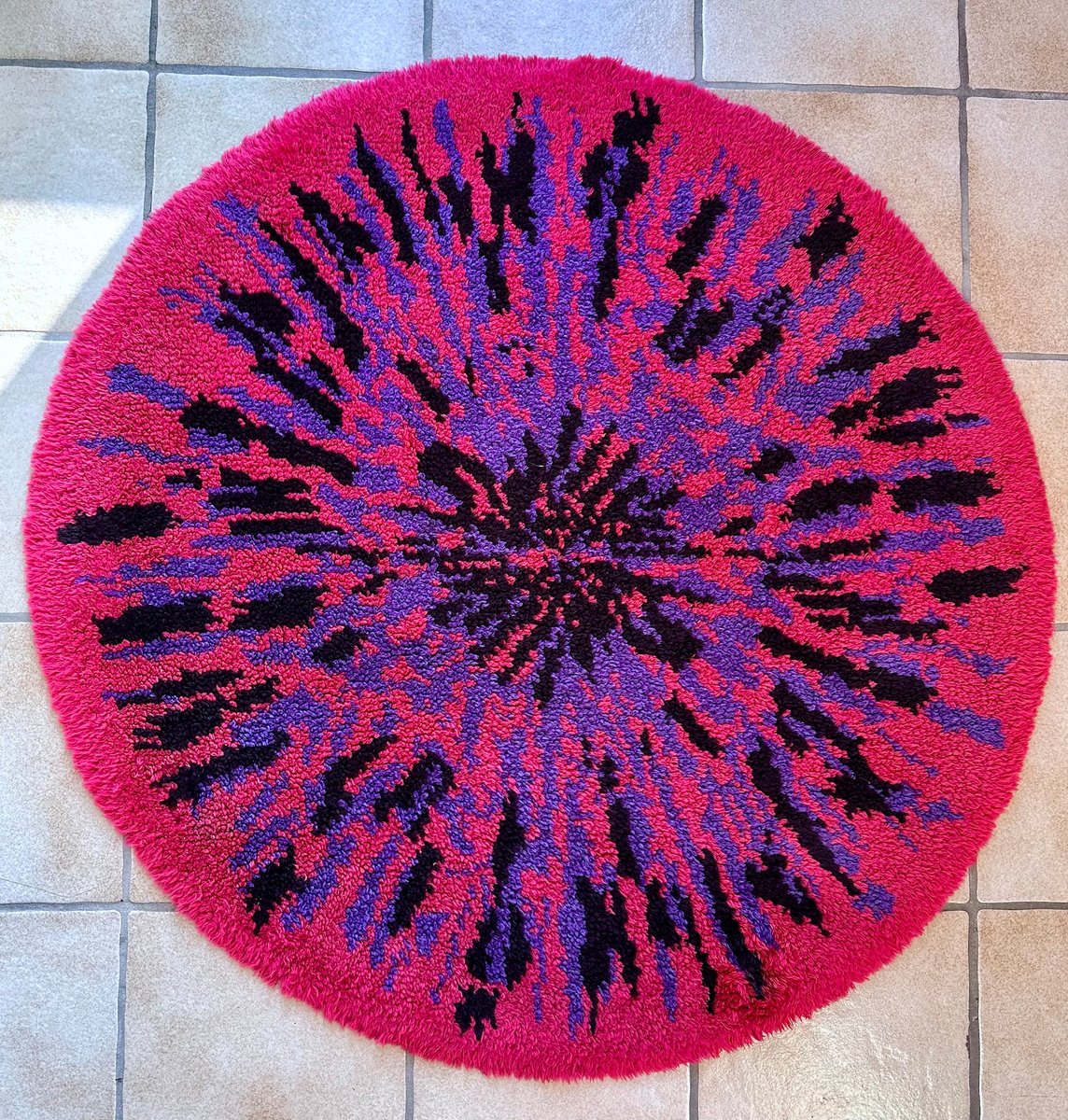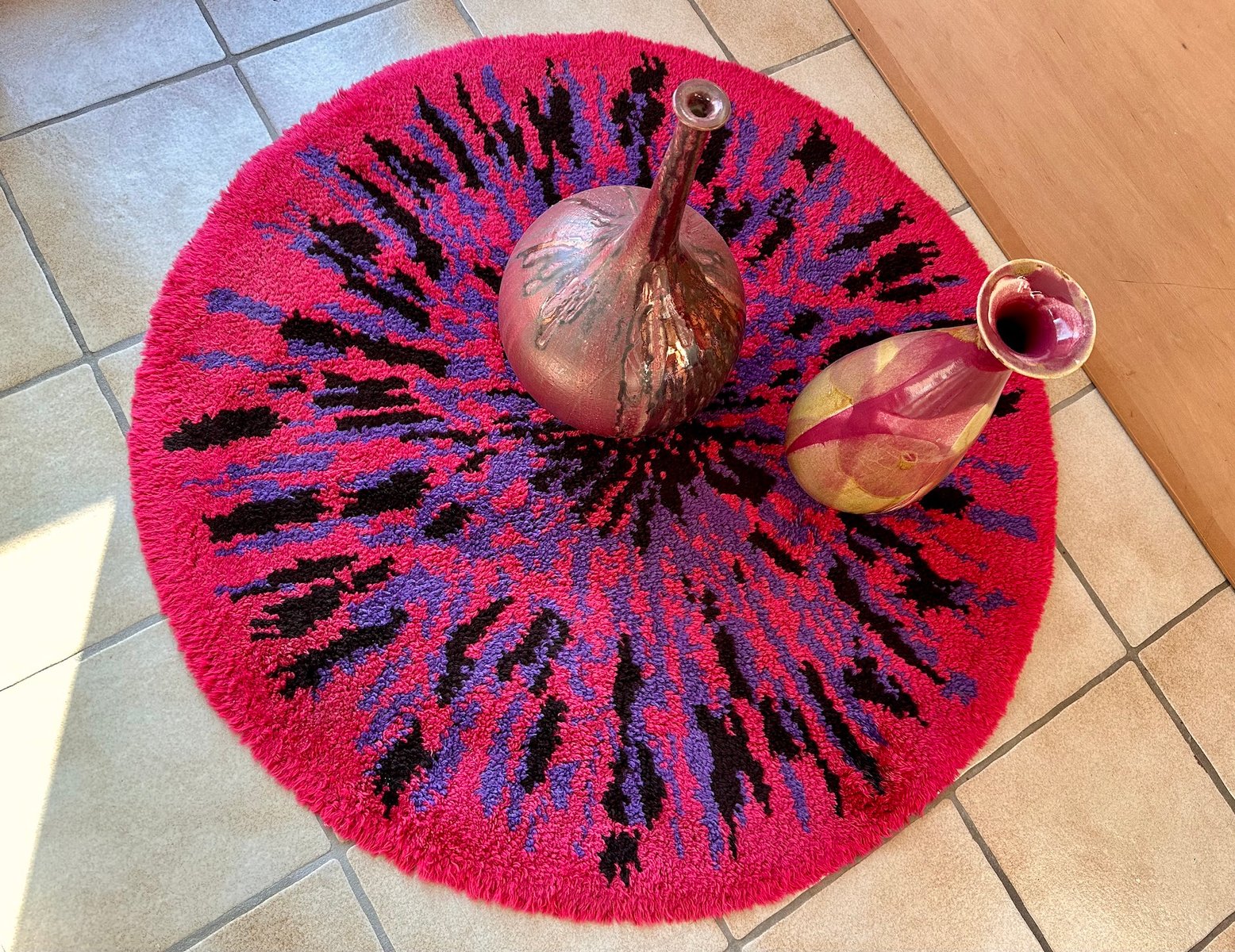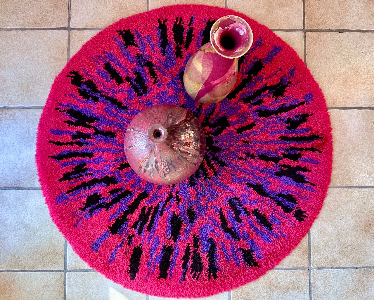 Vintage Scandinavian Round Wool High-Pile Rug, 1970s