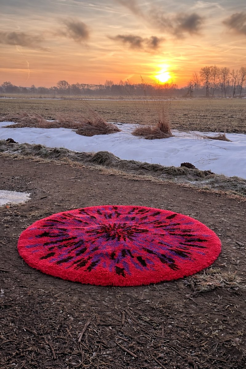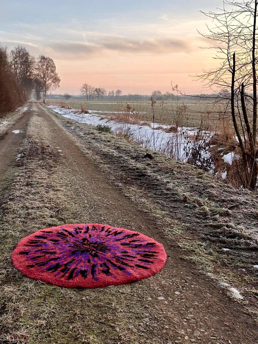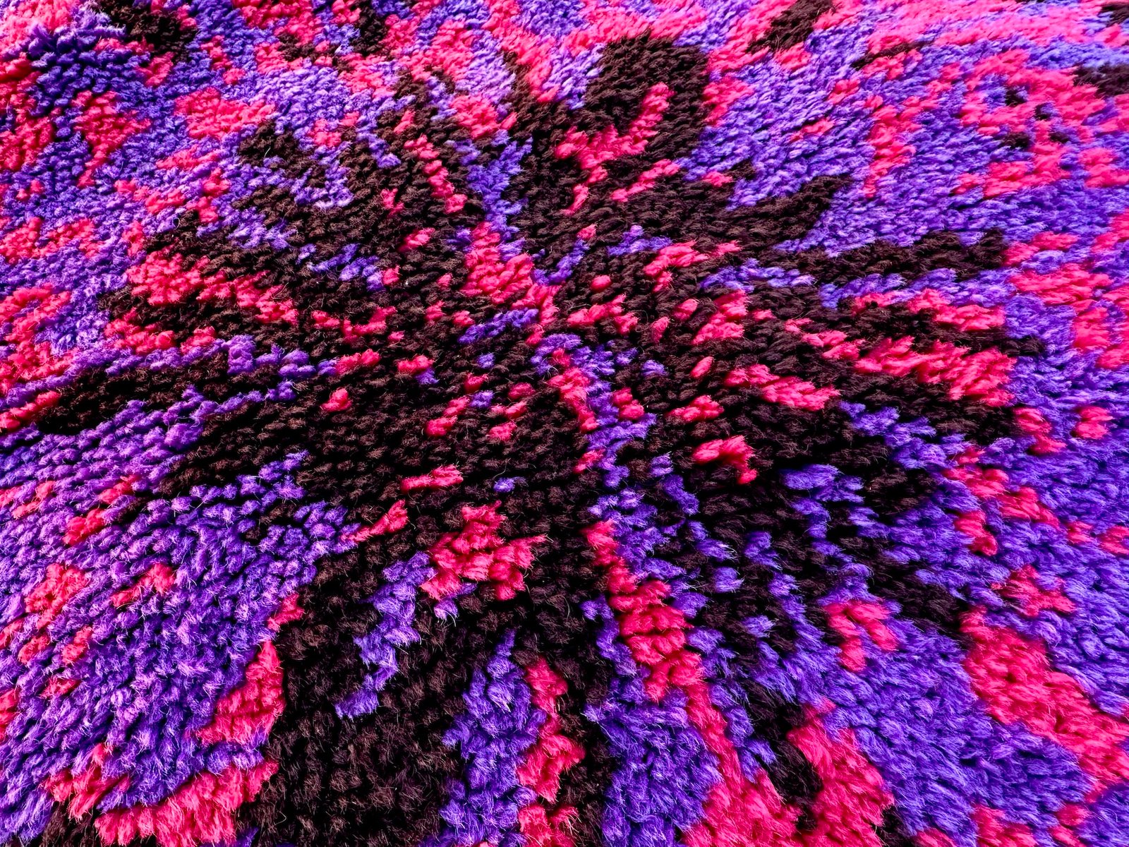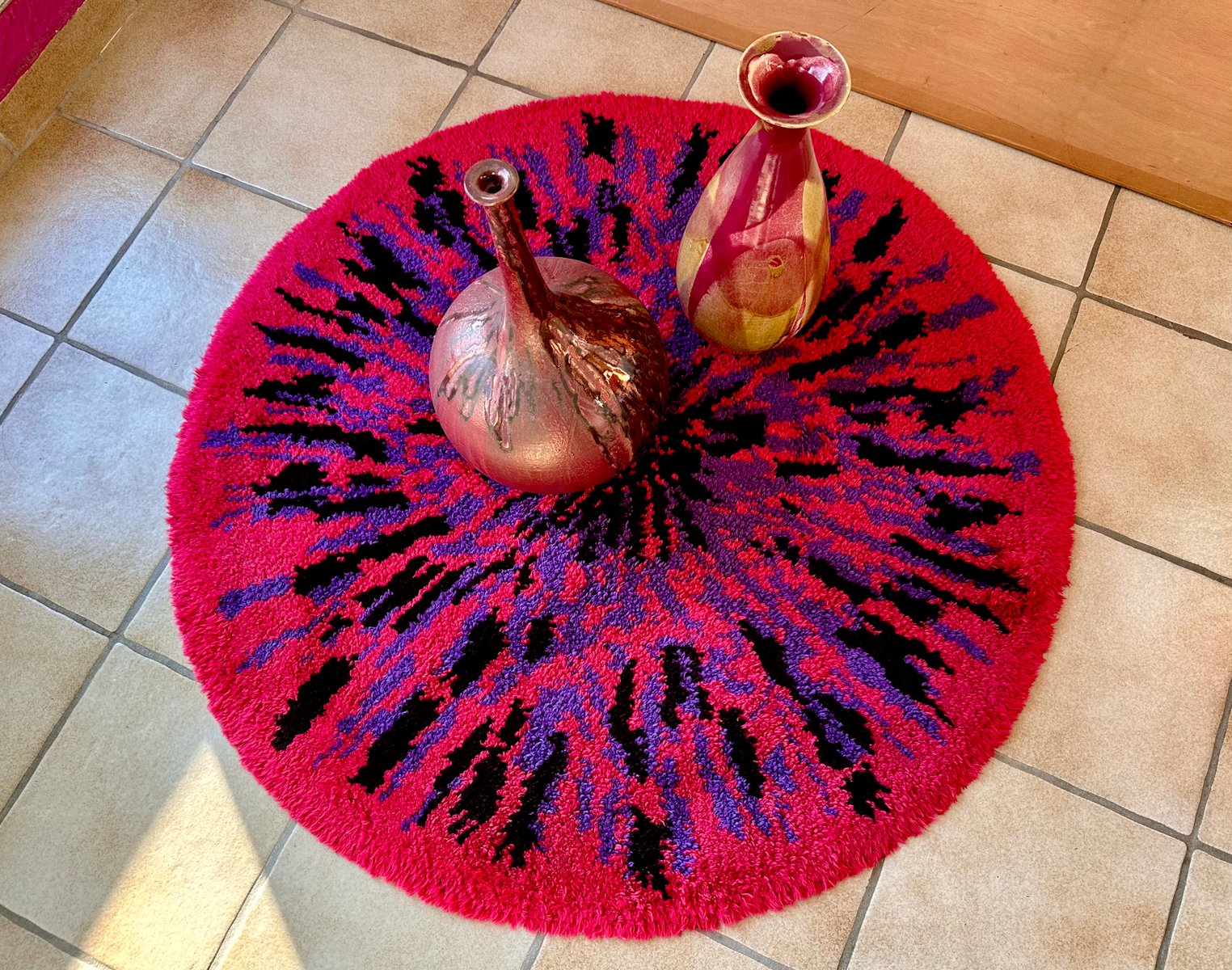 Vintage Scandinavian Round Wool High-Pile Rug, 1970s