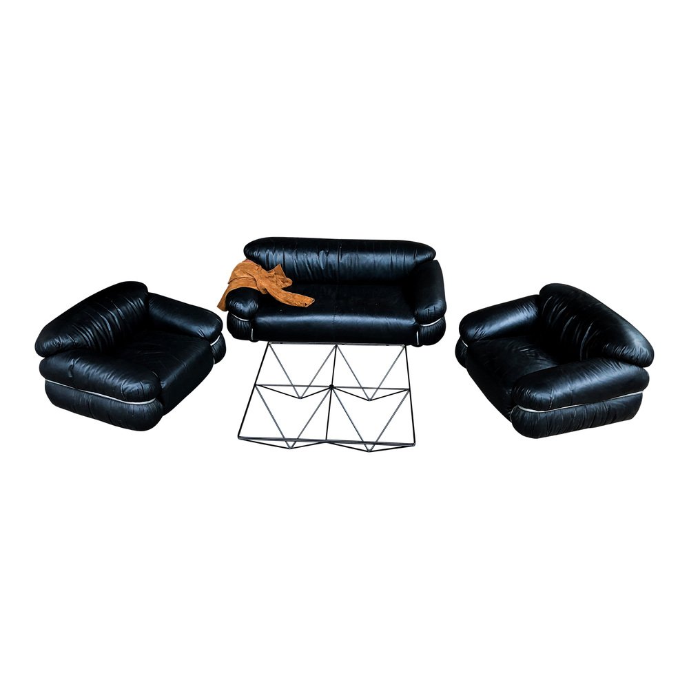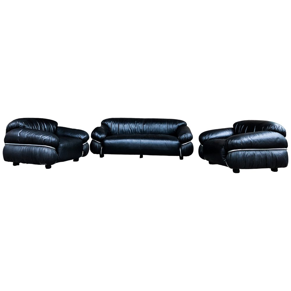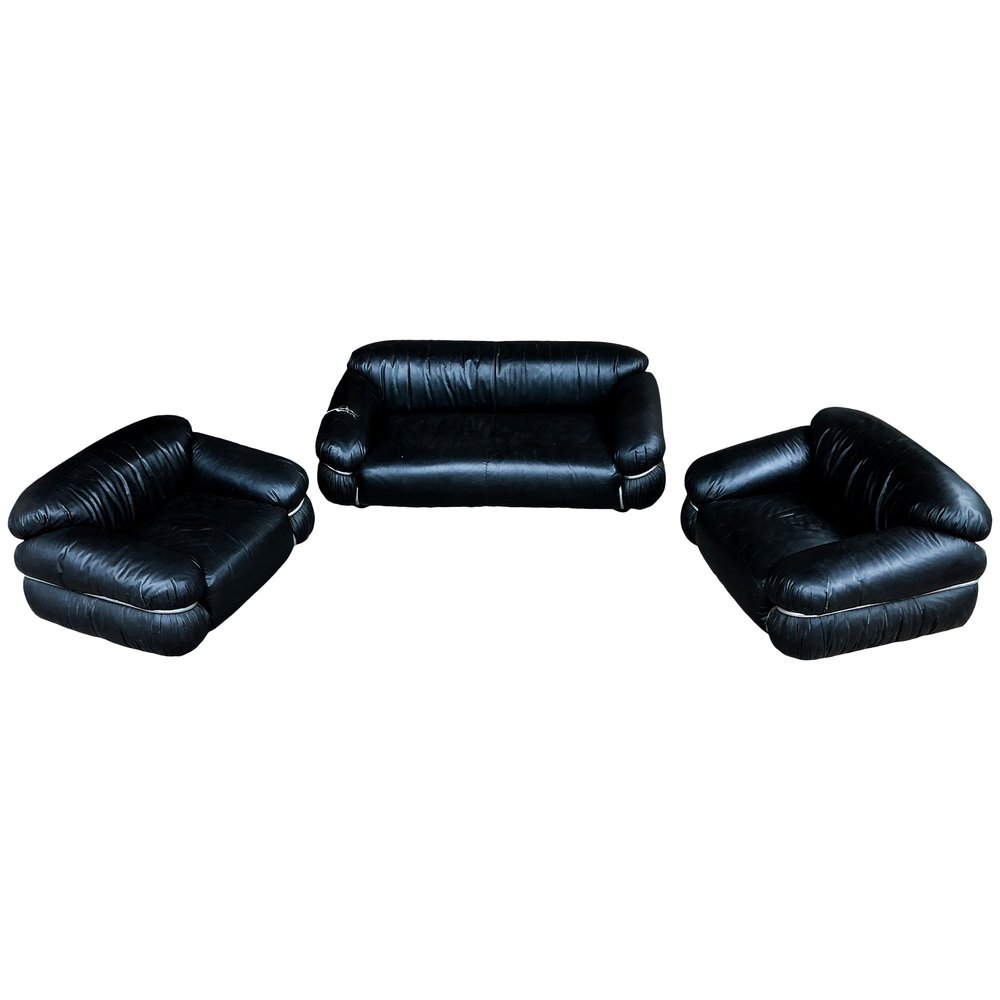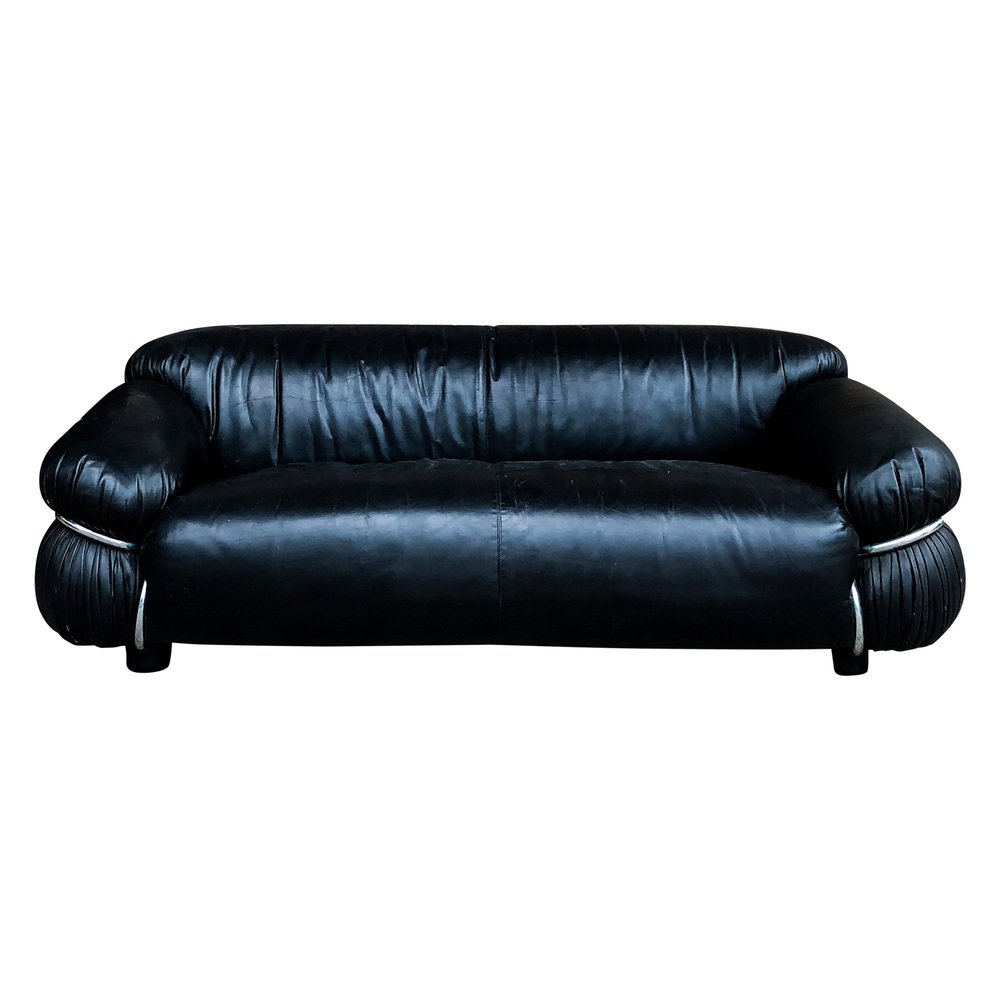 Black Leather Anfibio Three Seater Sofa by Alessandro Becchi for Giovannetti, 1972
