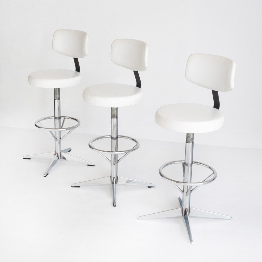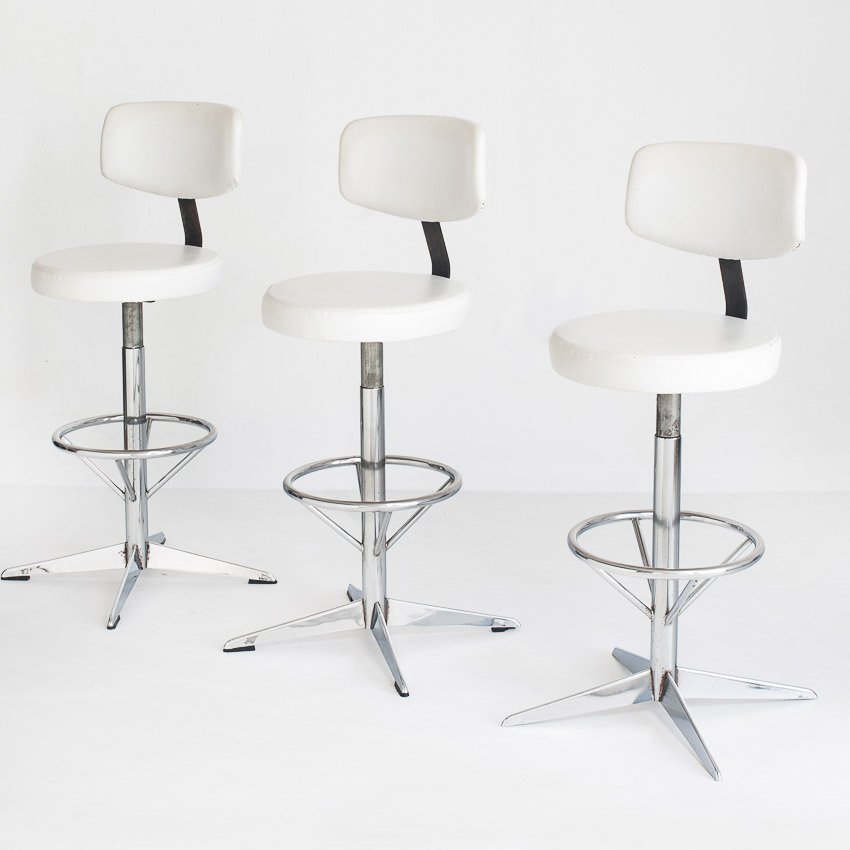 Vintage Swivel Stool in Iron and Faux Leather, 1970s