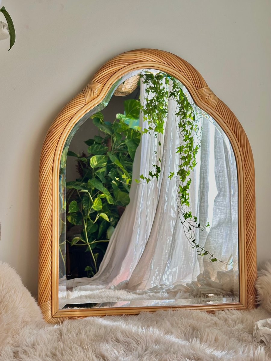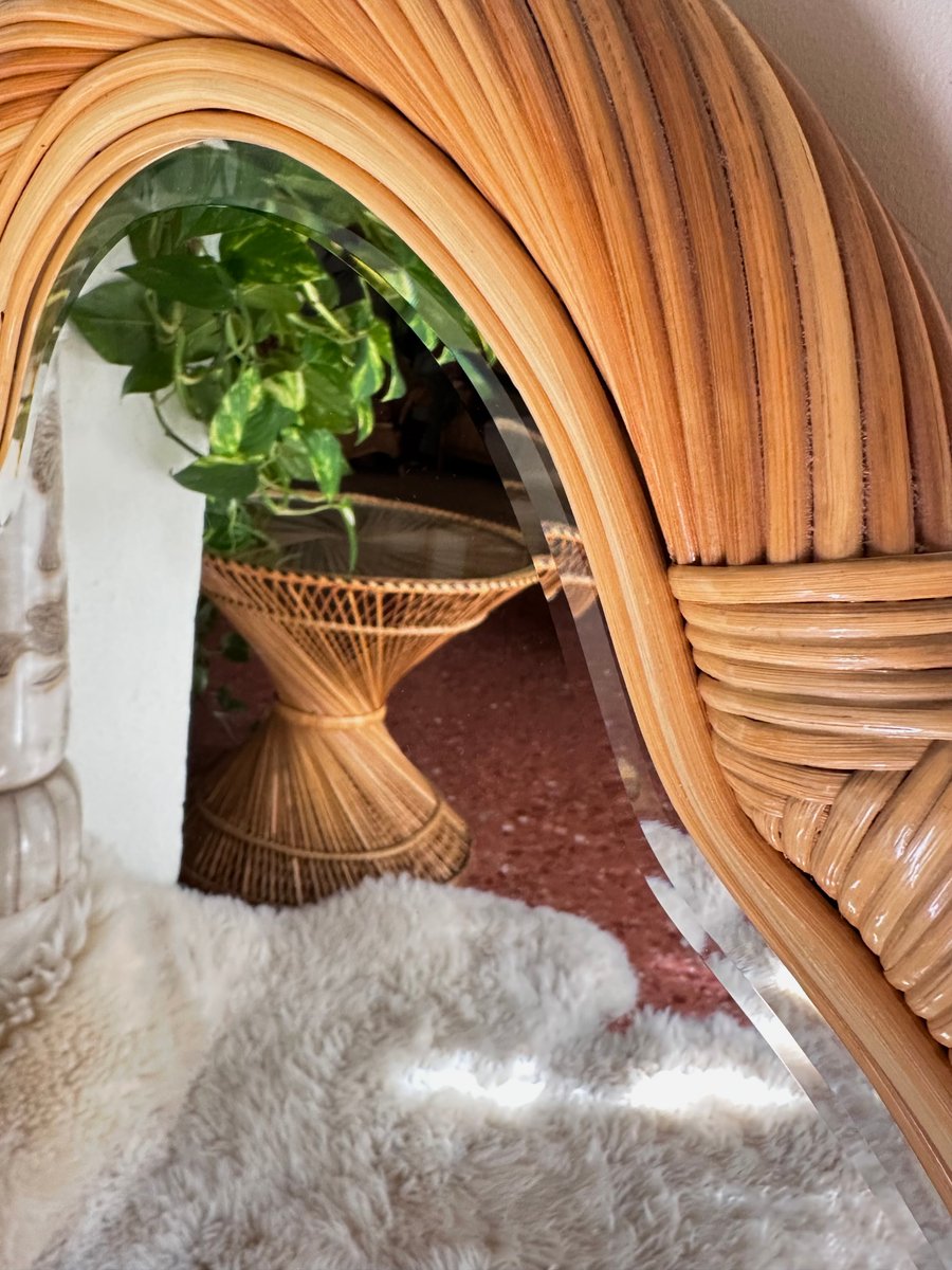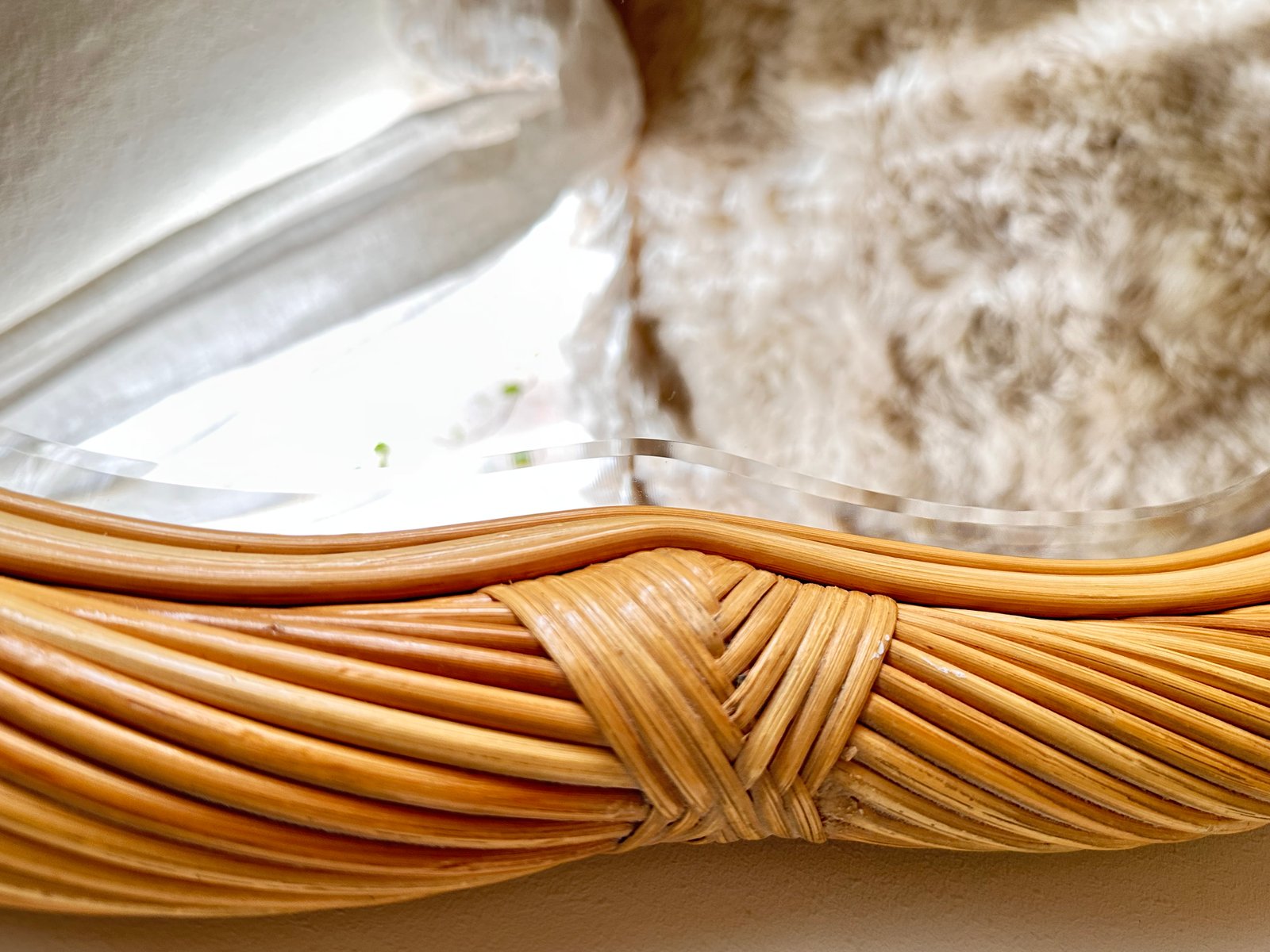 Vintage Twister Spiral Rattan Mirror with Beveled Glass from Alberich, Spain, 1970s