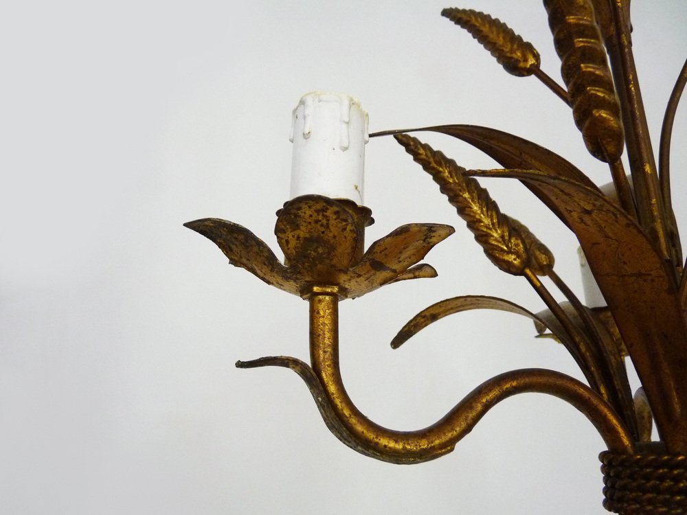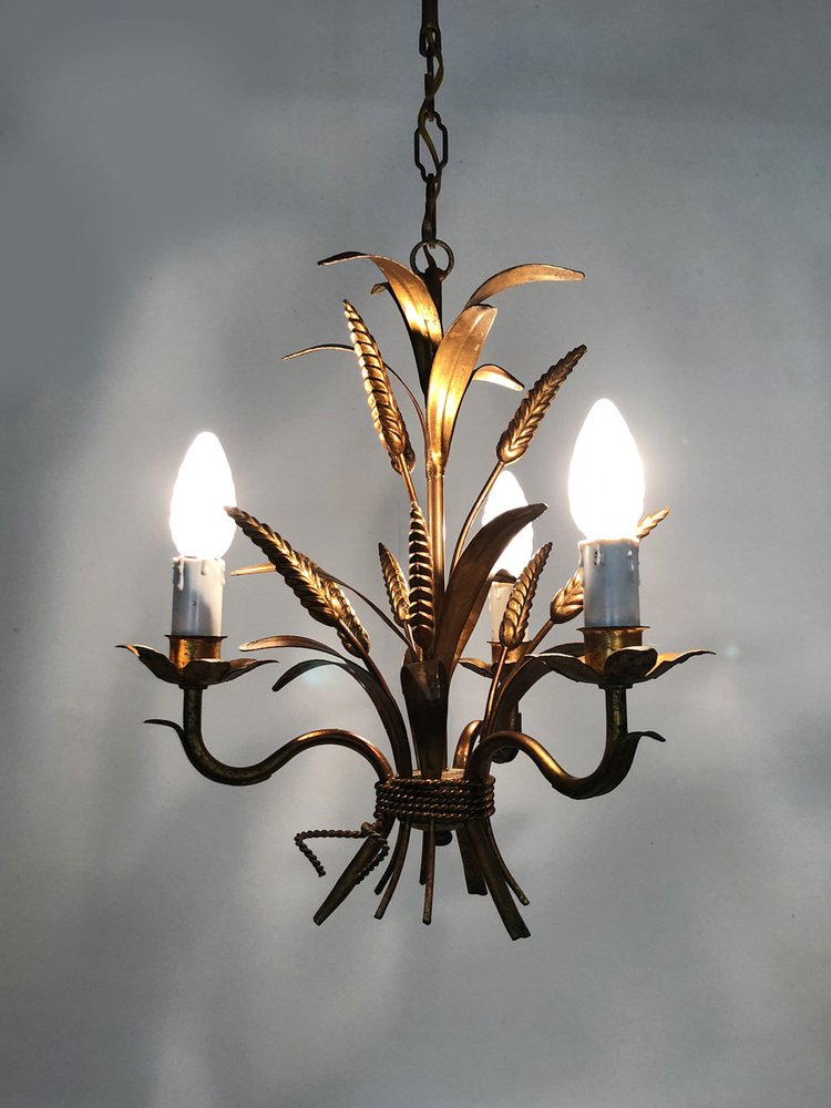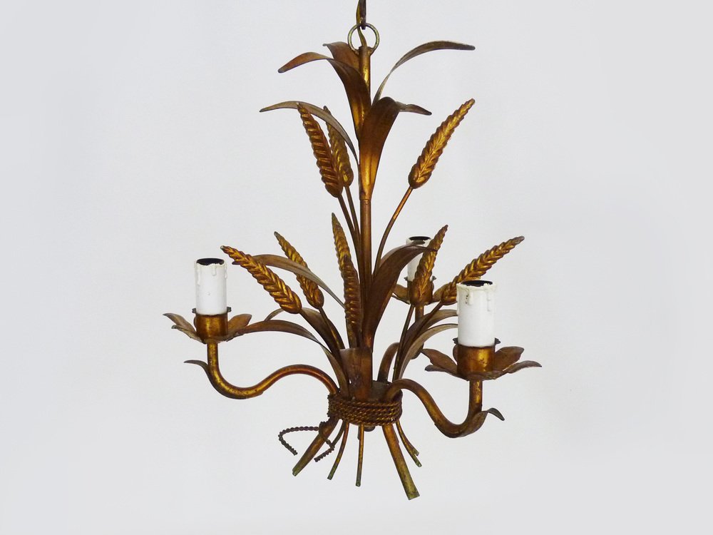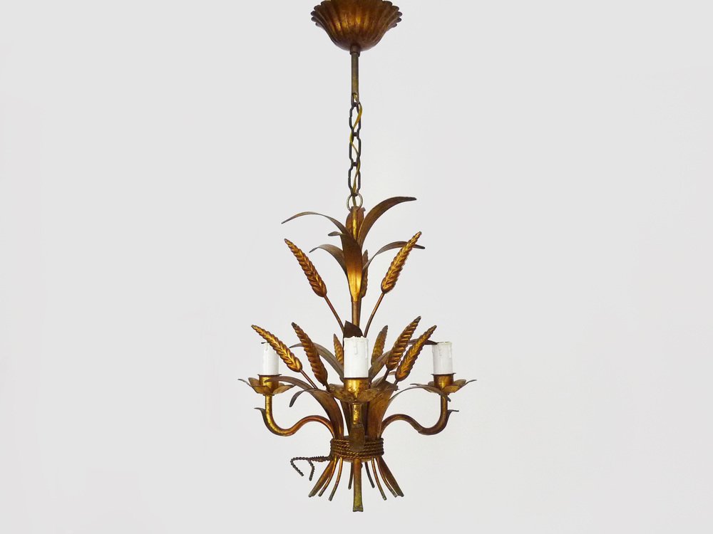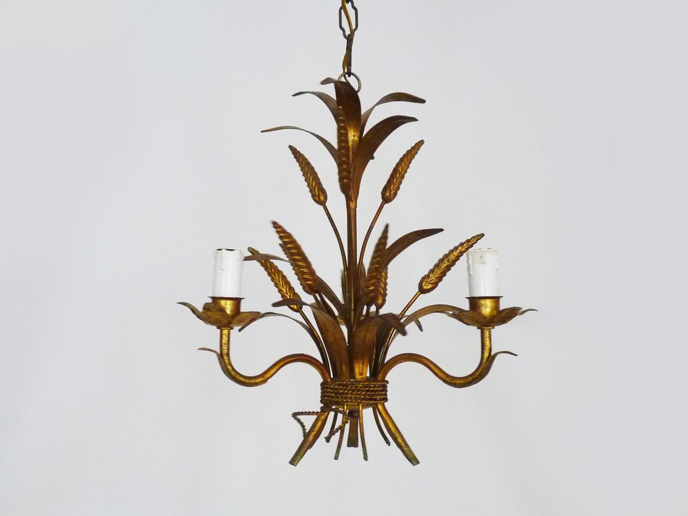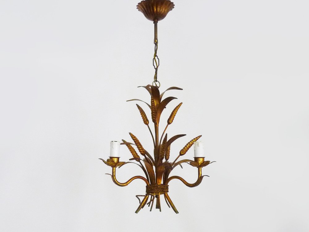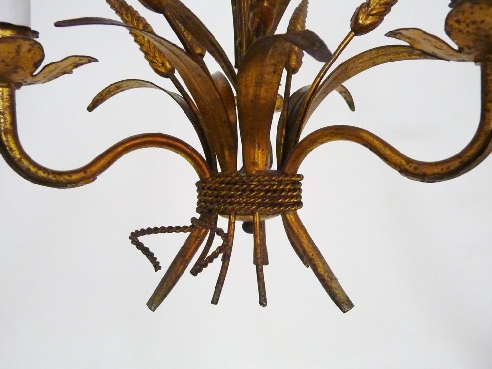 Vintage Wheat Ear Chandelier in Gilt Metal from Masca, 1970s
