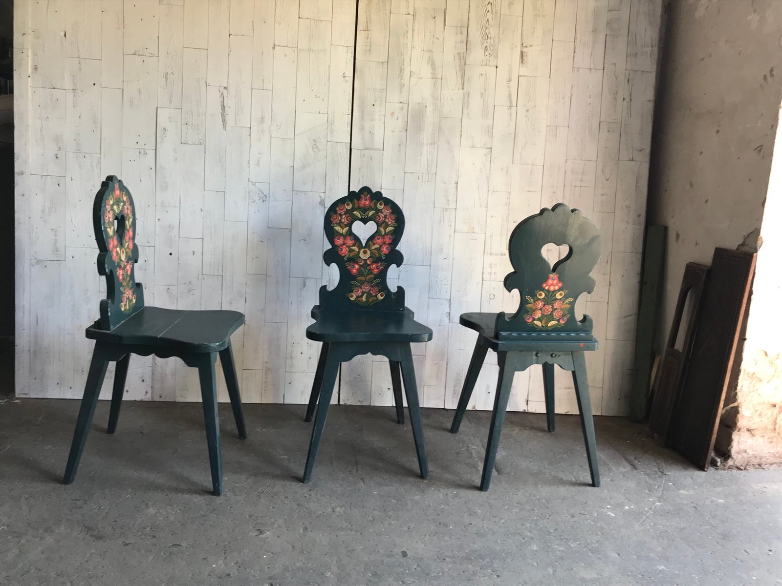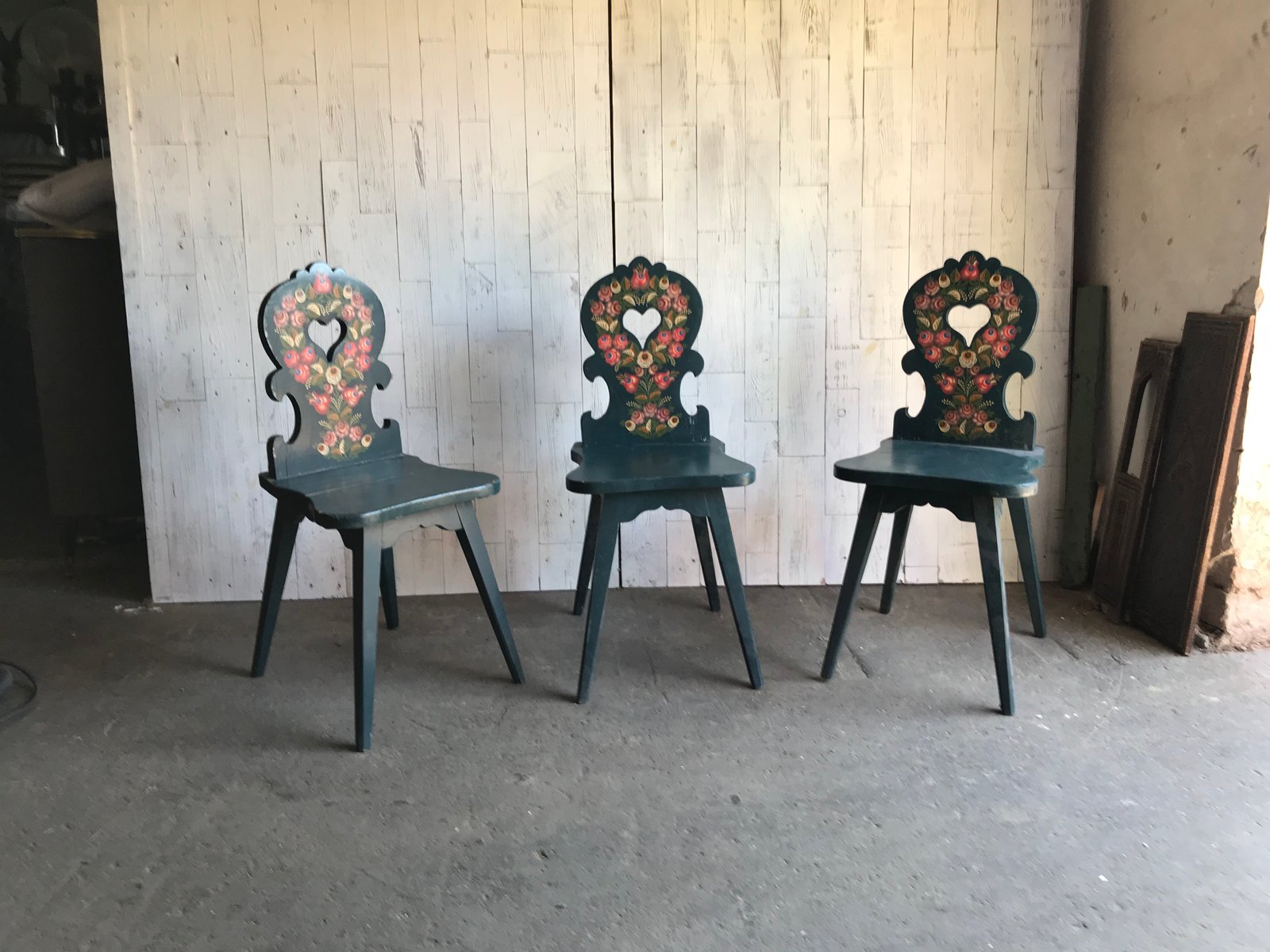 Vintage Wooden Side Chairs, 1920s, Set of 3
