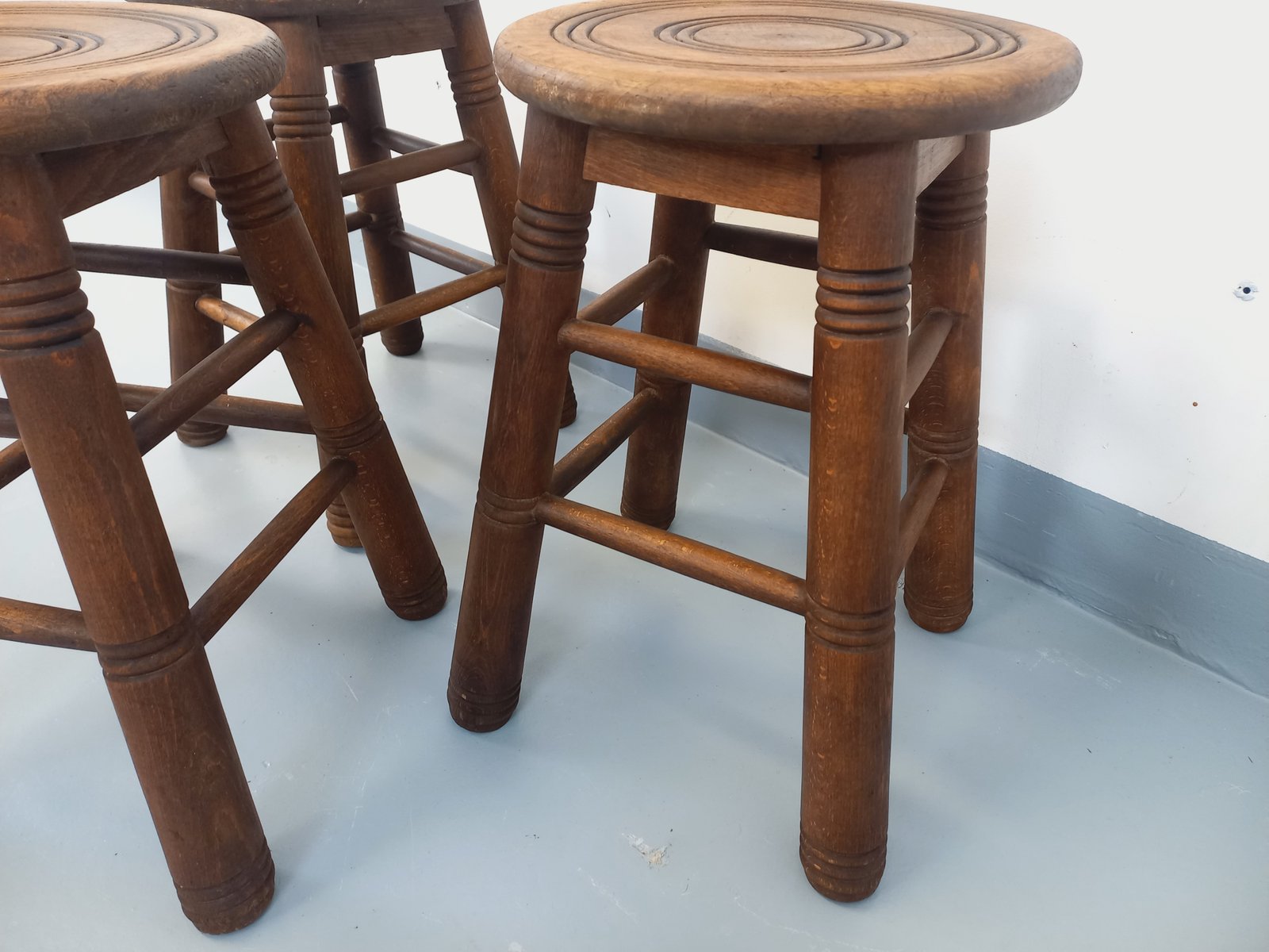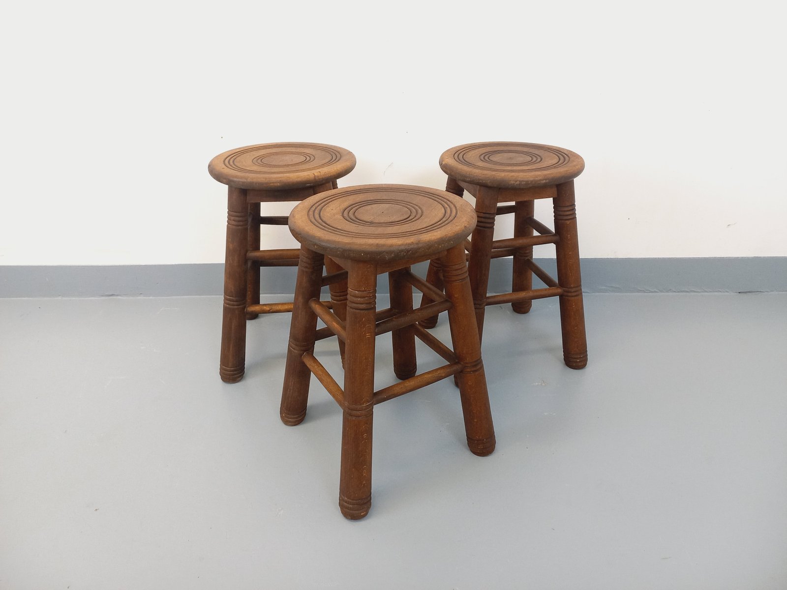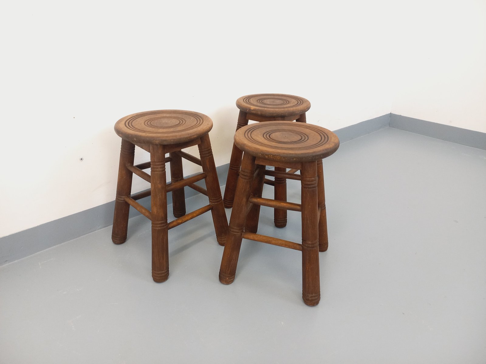 Vintage Wooden Stools, 1960s, Set of 3
