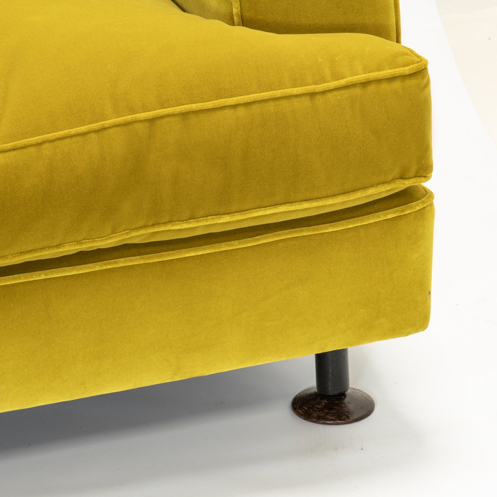 Italian furniture manufacturing company Arflex was originally founded in Milan 1947 by a team of engineers—Carlo Barassi, Renato Teani, Pio Reggiani, and Aldo Bai—from Italian tire company Pirelli. While exploring new technologies in rubber production, they developed a new polyurethane foam and elastic tape that held great potential for modernist furniture design. Italian architect-designer Marco Zanuso (1916-2001) was brought in to create the first collections, guided by the principle that the new materials would inform the aesthetic result.