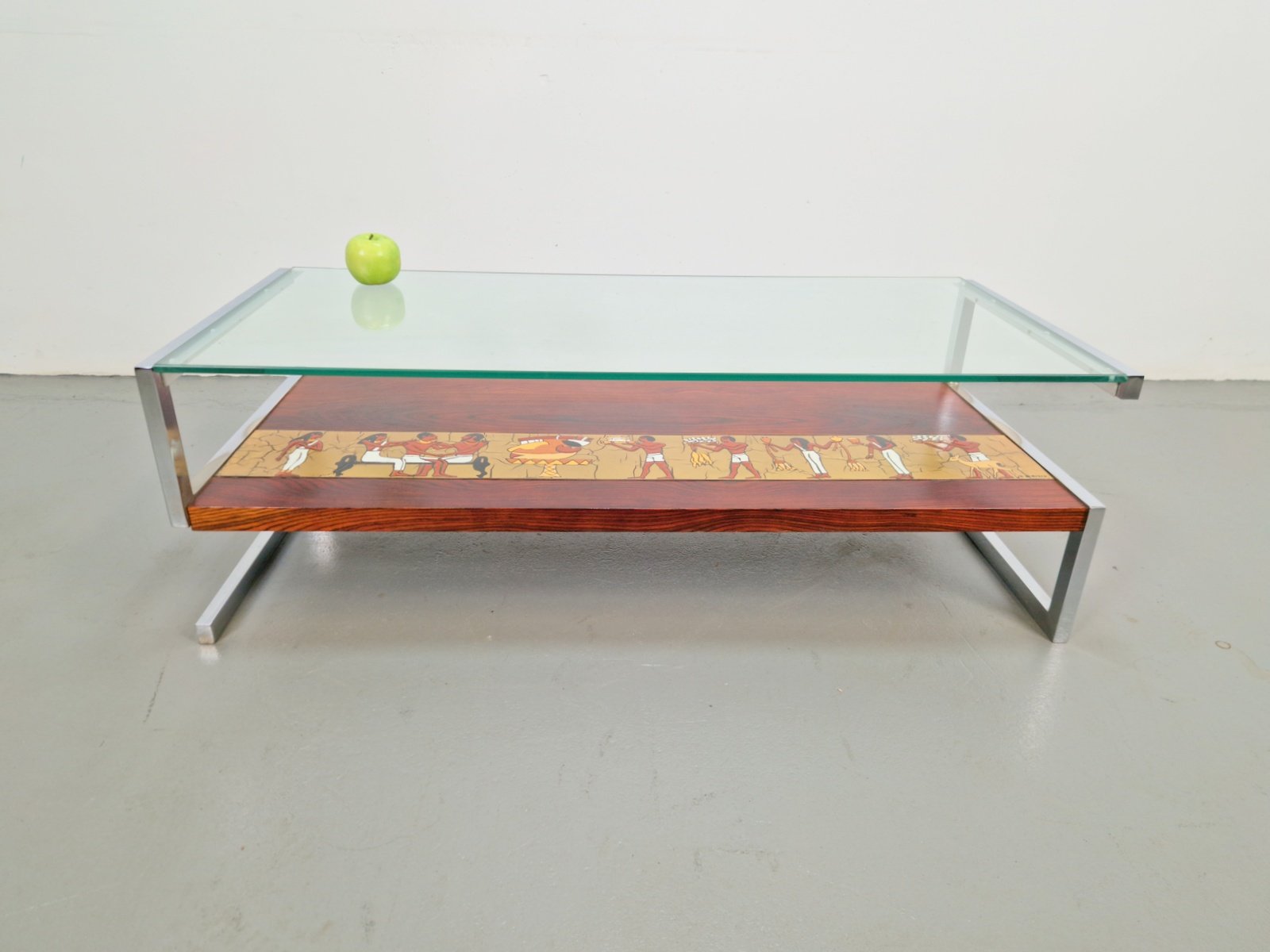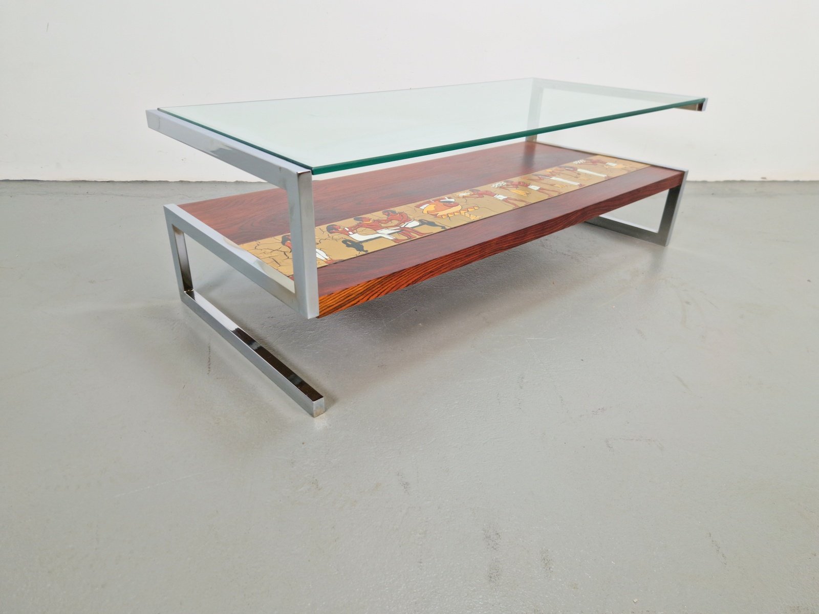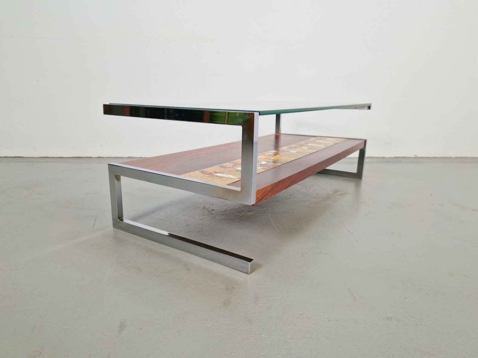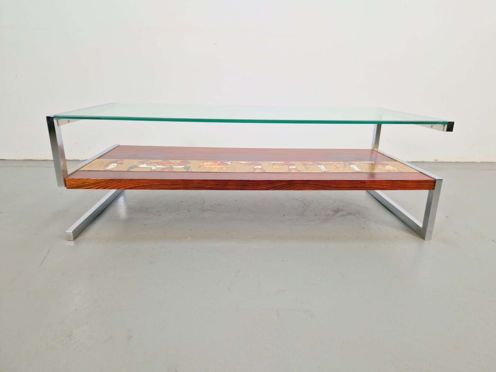 Vintage Z-Shaped Coffee Table with Ceramic Tableau, 1960s