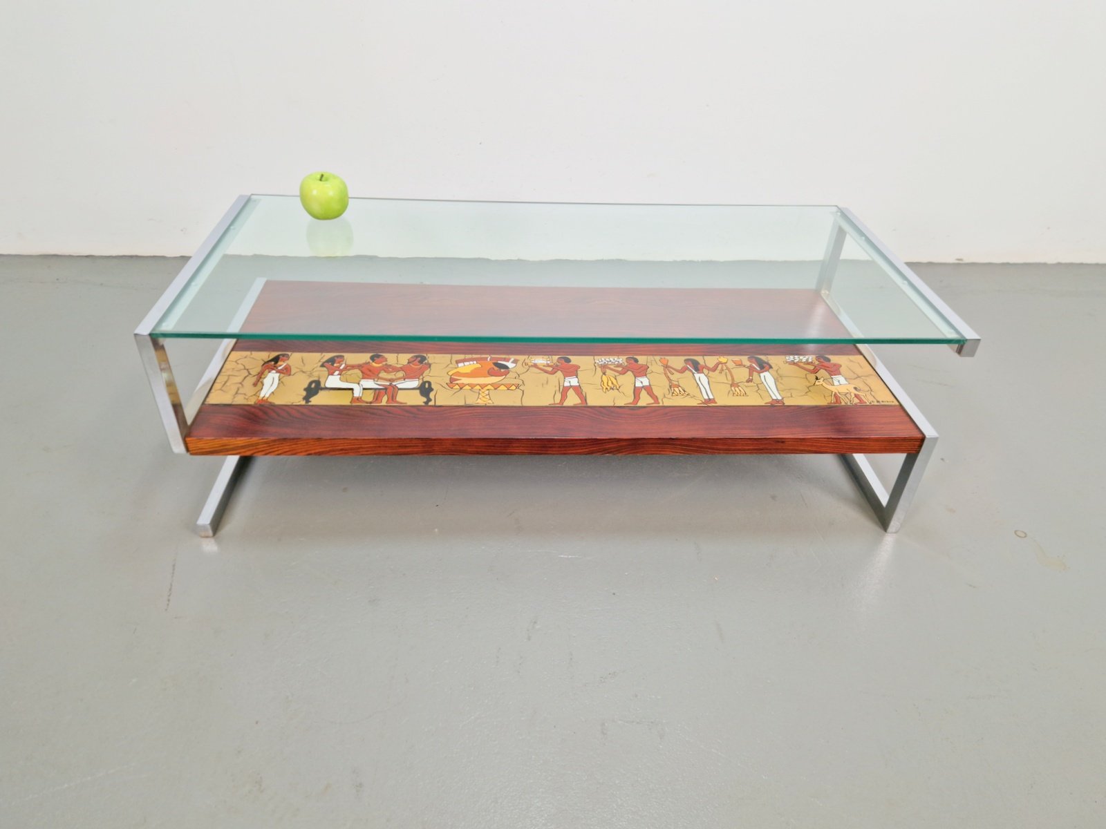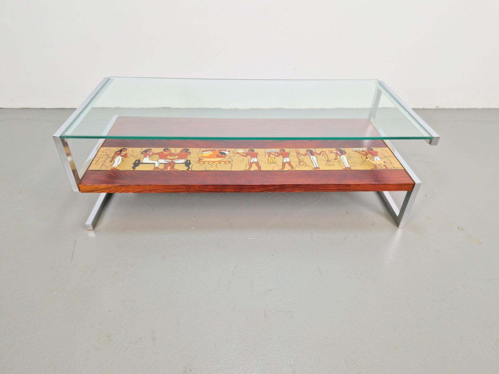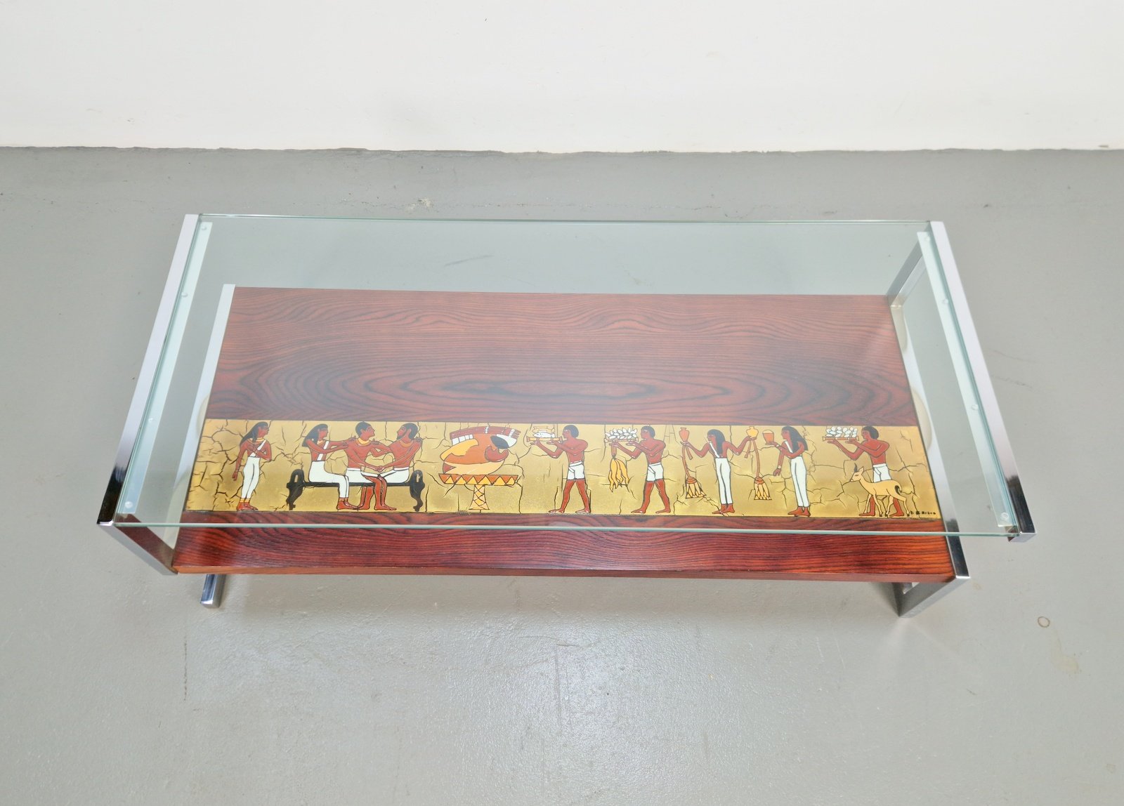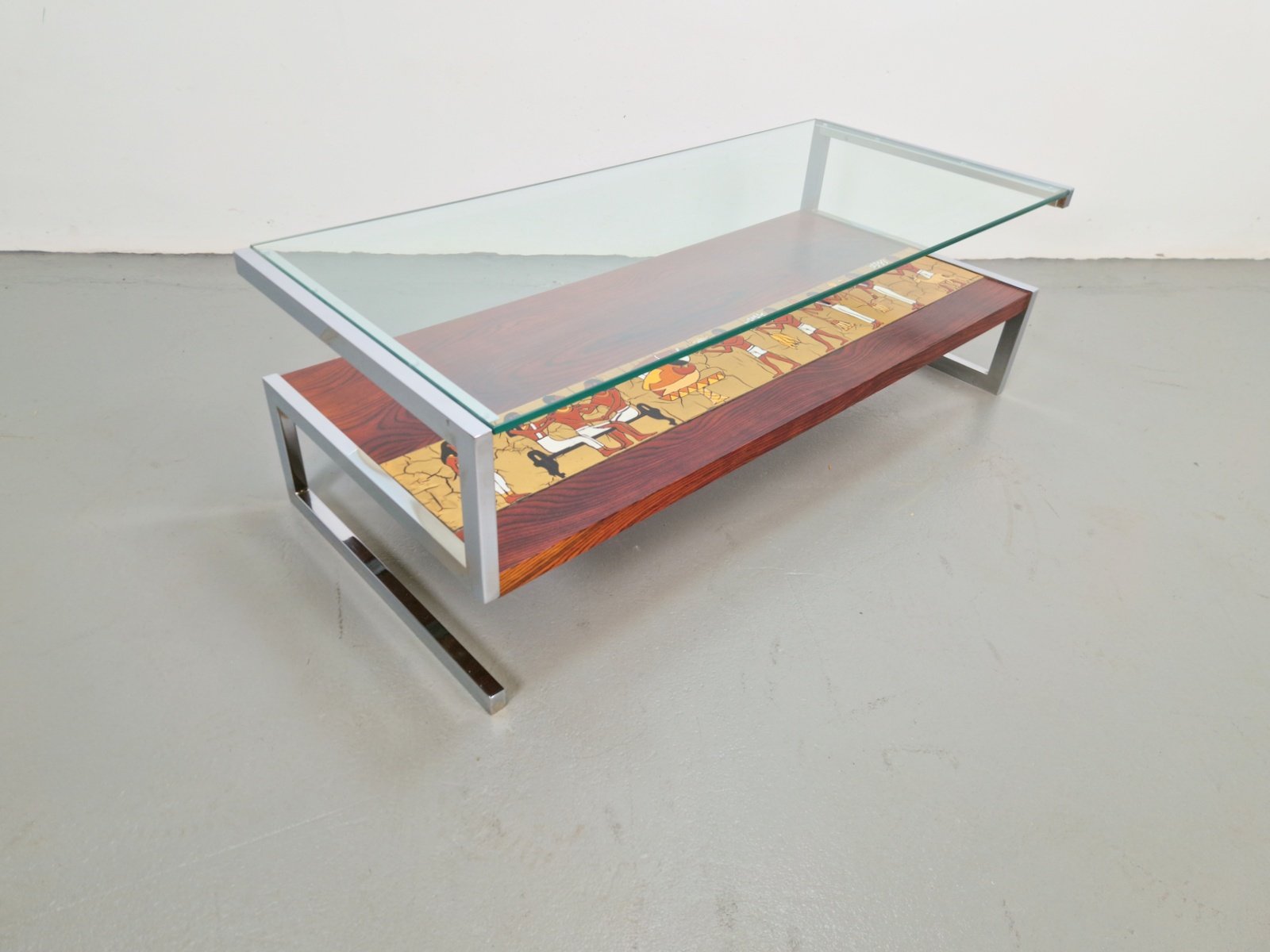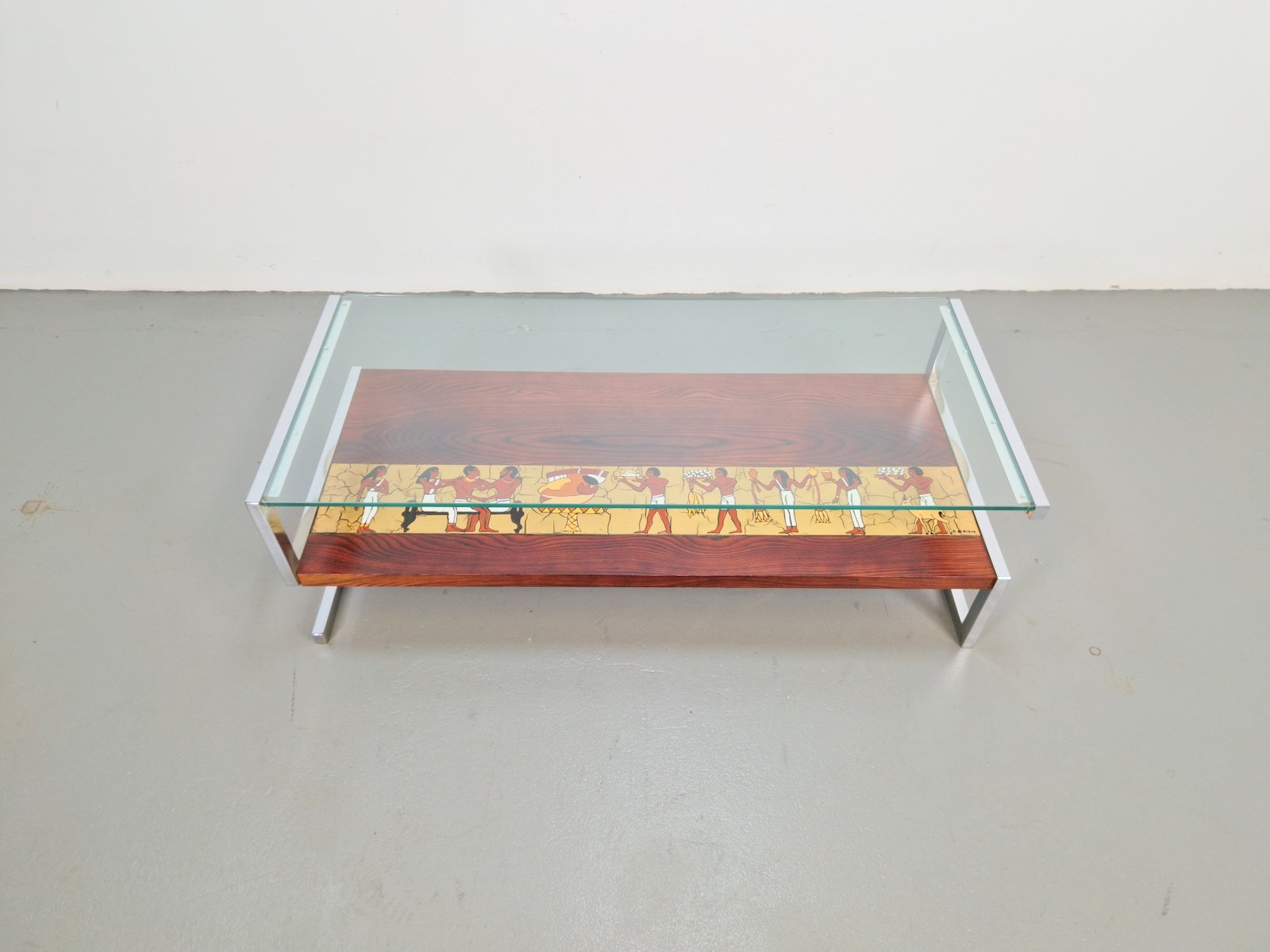 Vintage Z-Shaped Coffee Table with Ceramic Tableau, 1960s
