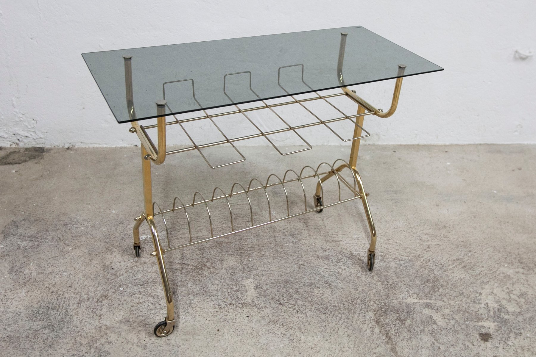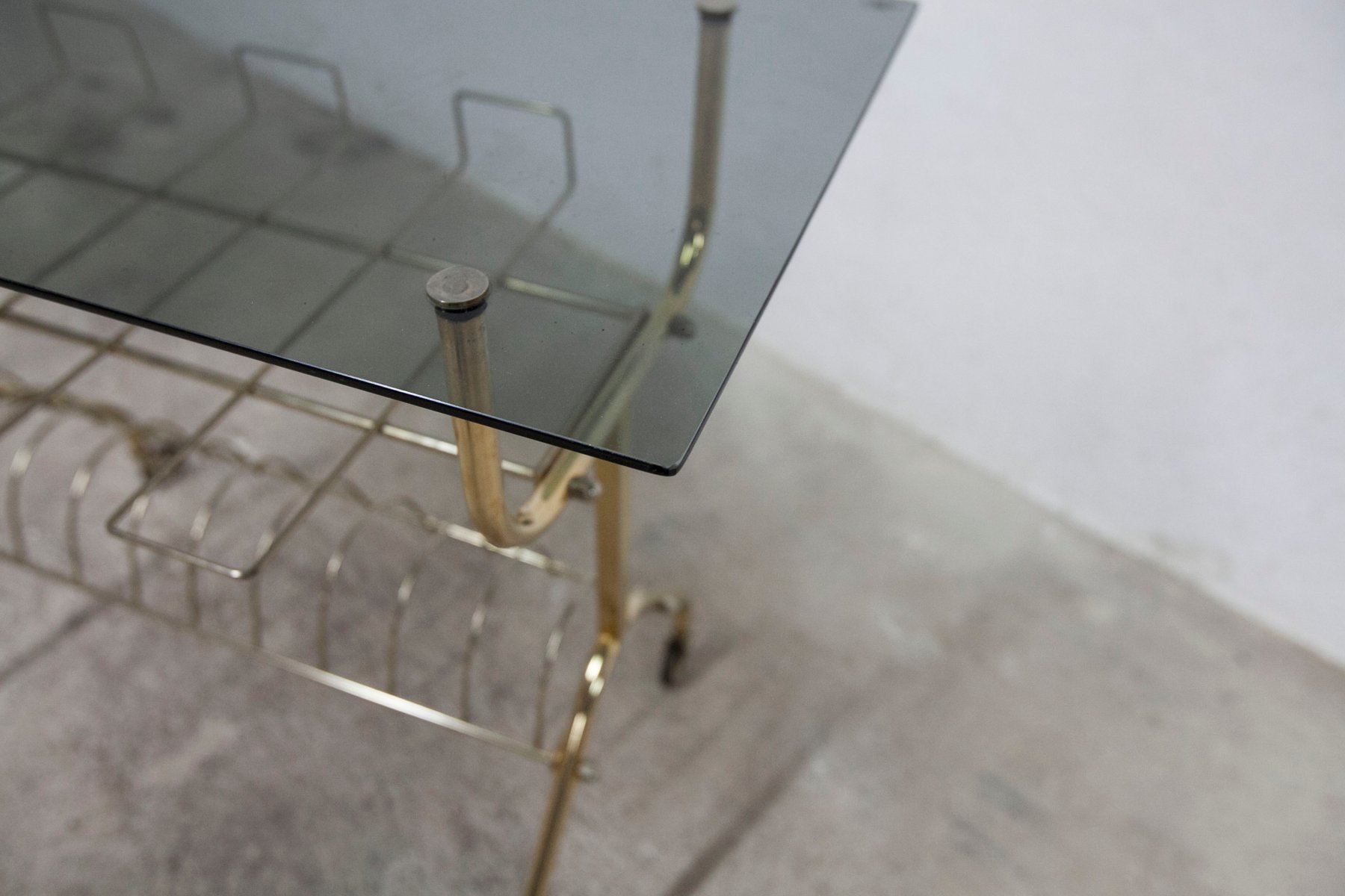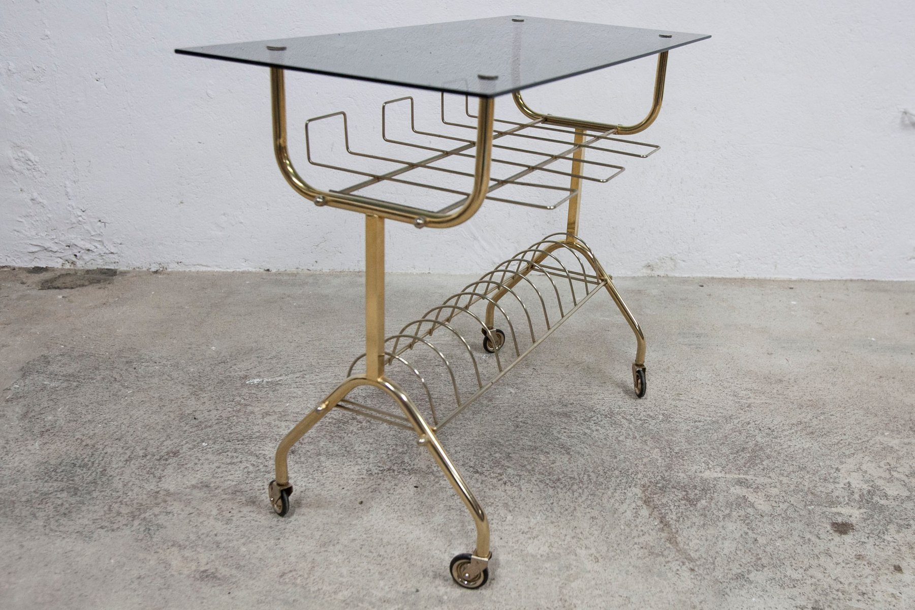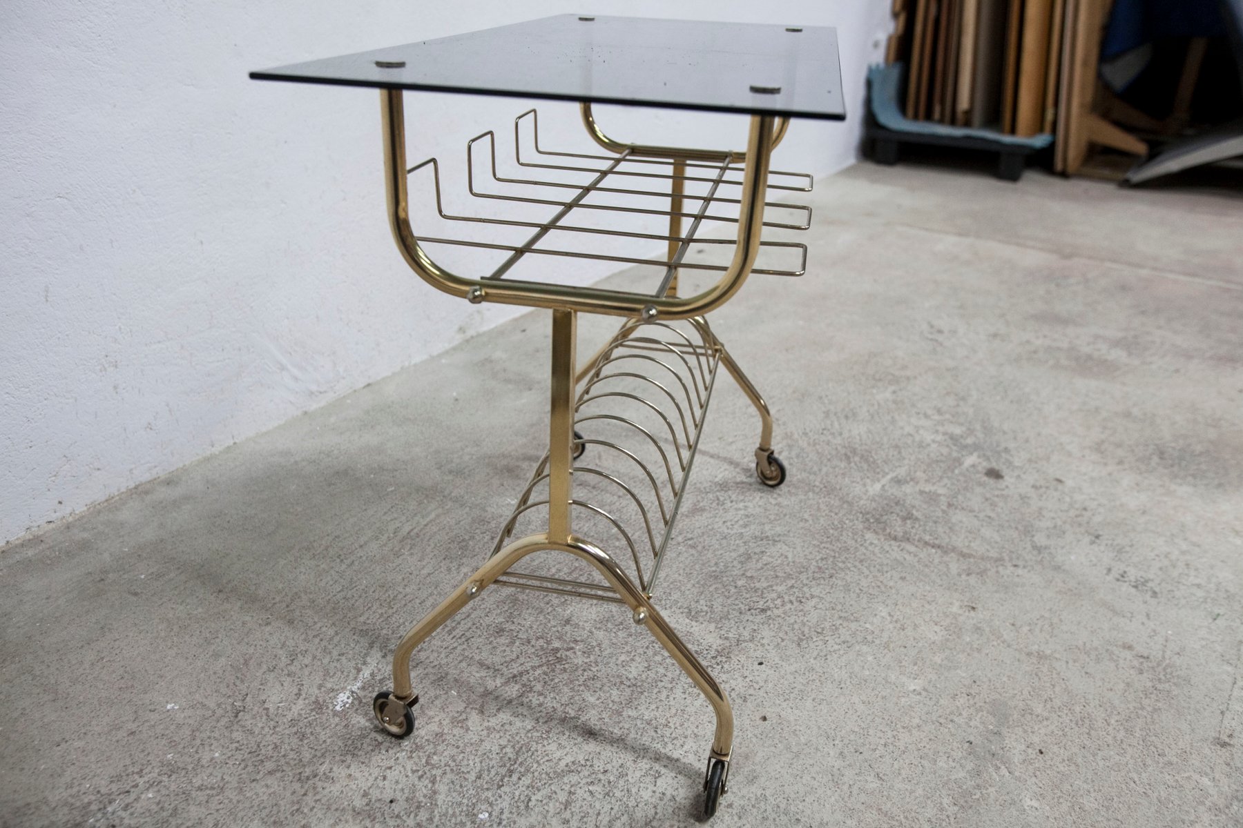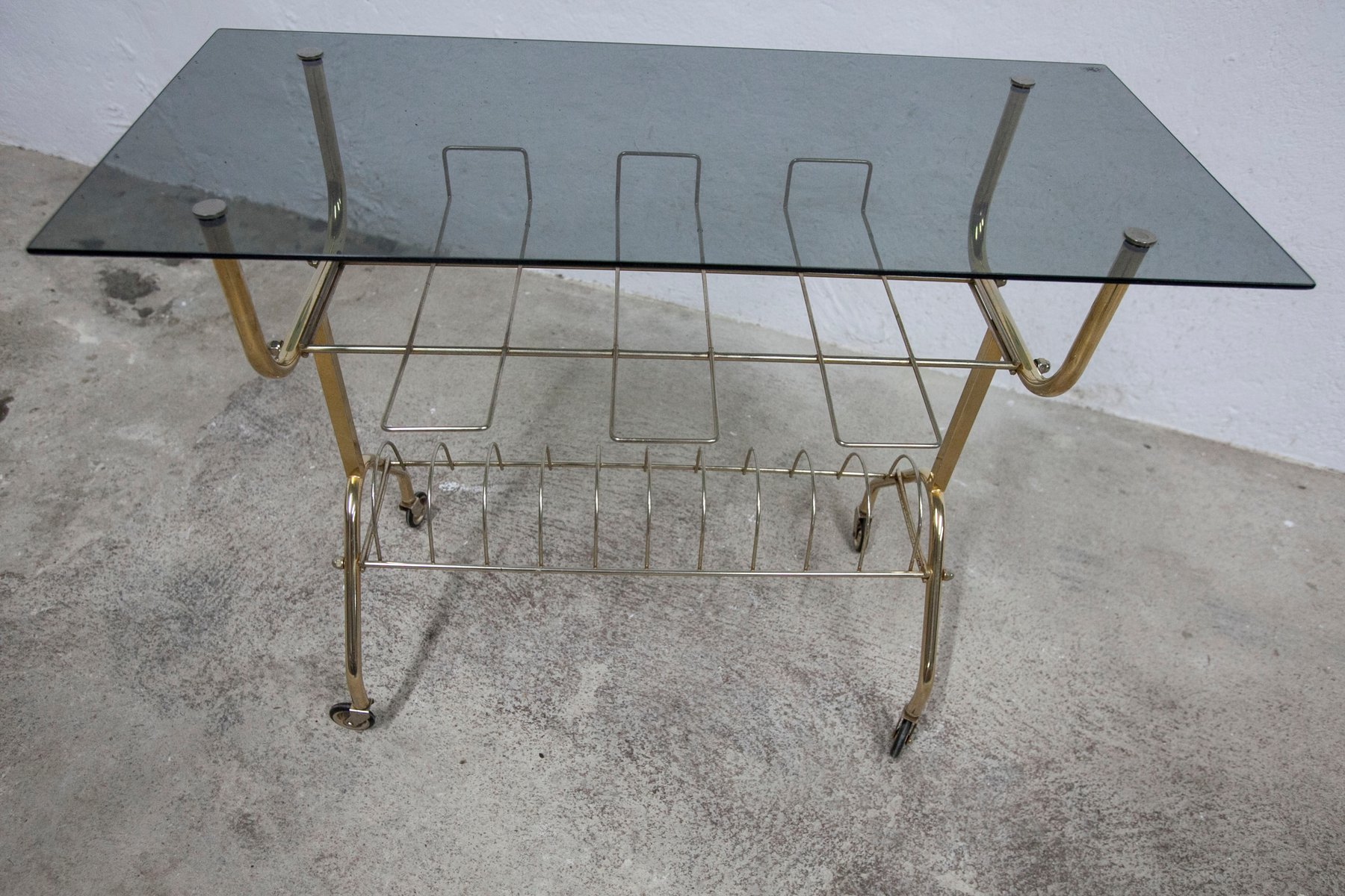 Vinyl Furniture Trolley with Wheels and Smoked Glass, 1970