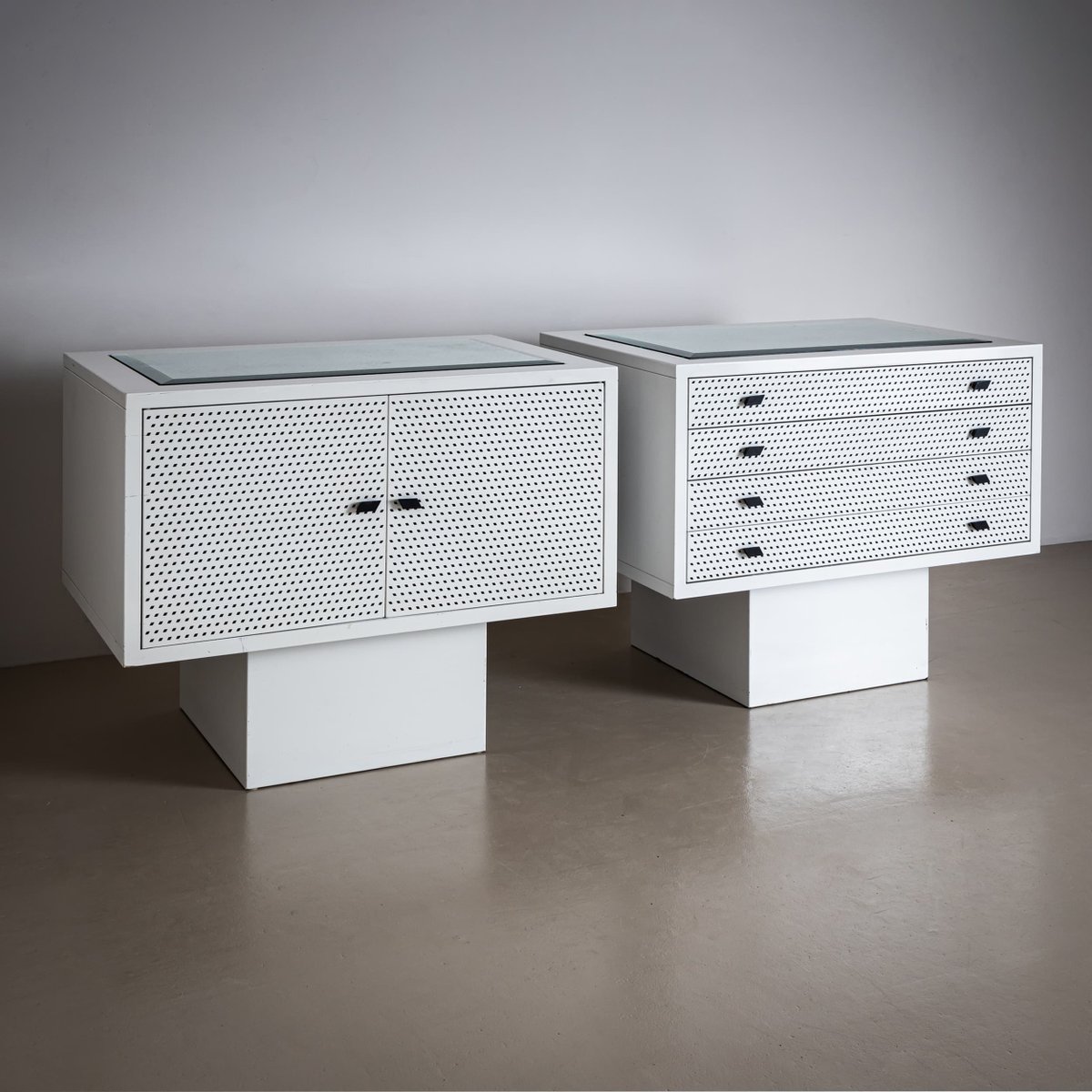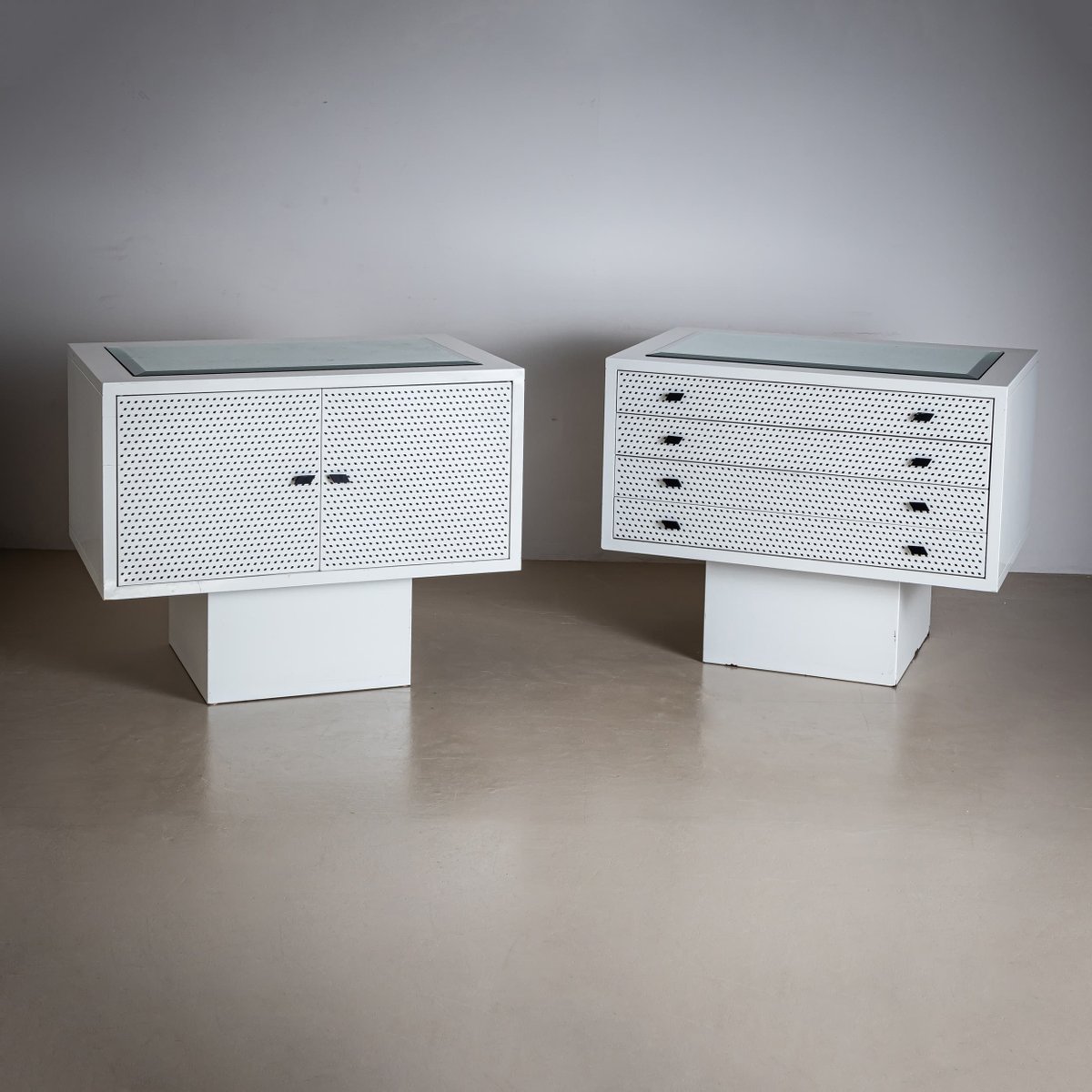 White Chest of Drawers and Cabinet by Matteo Thun, Italy, 1980s, Set of 2