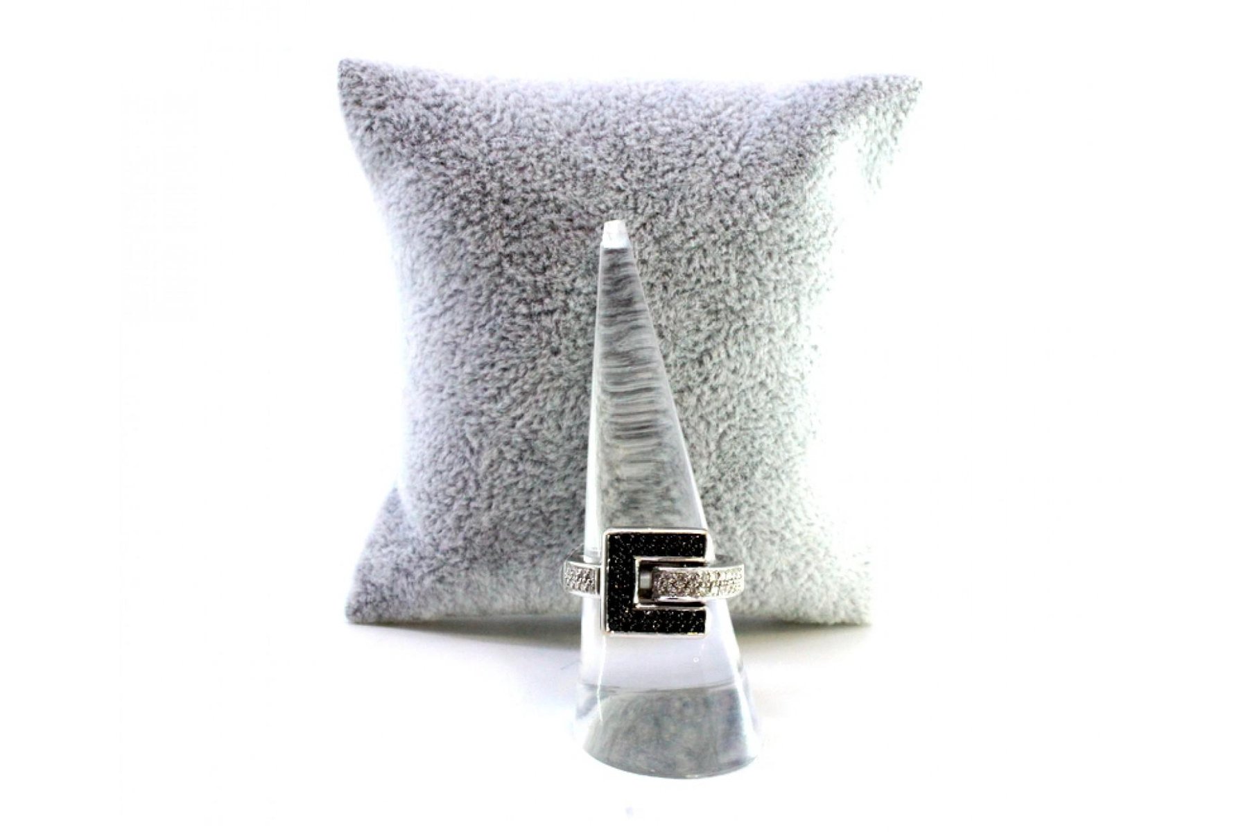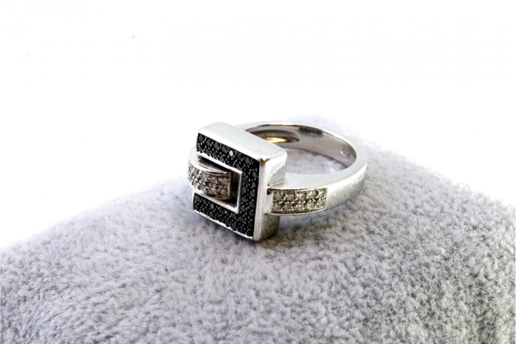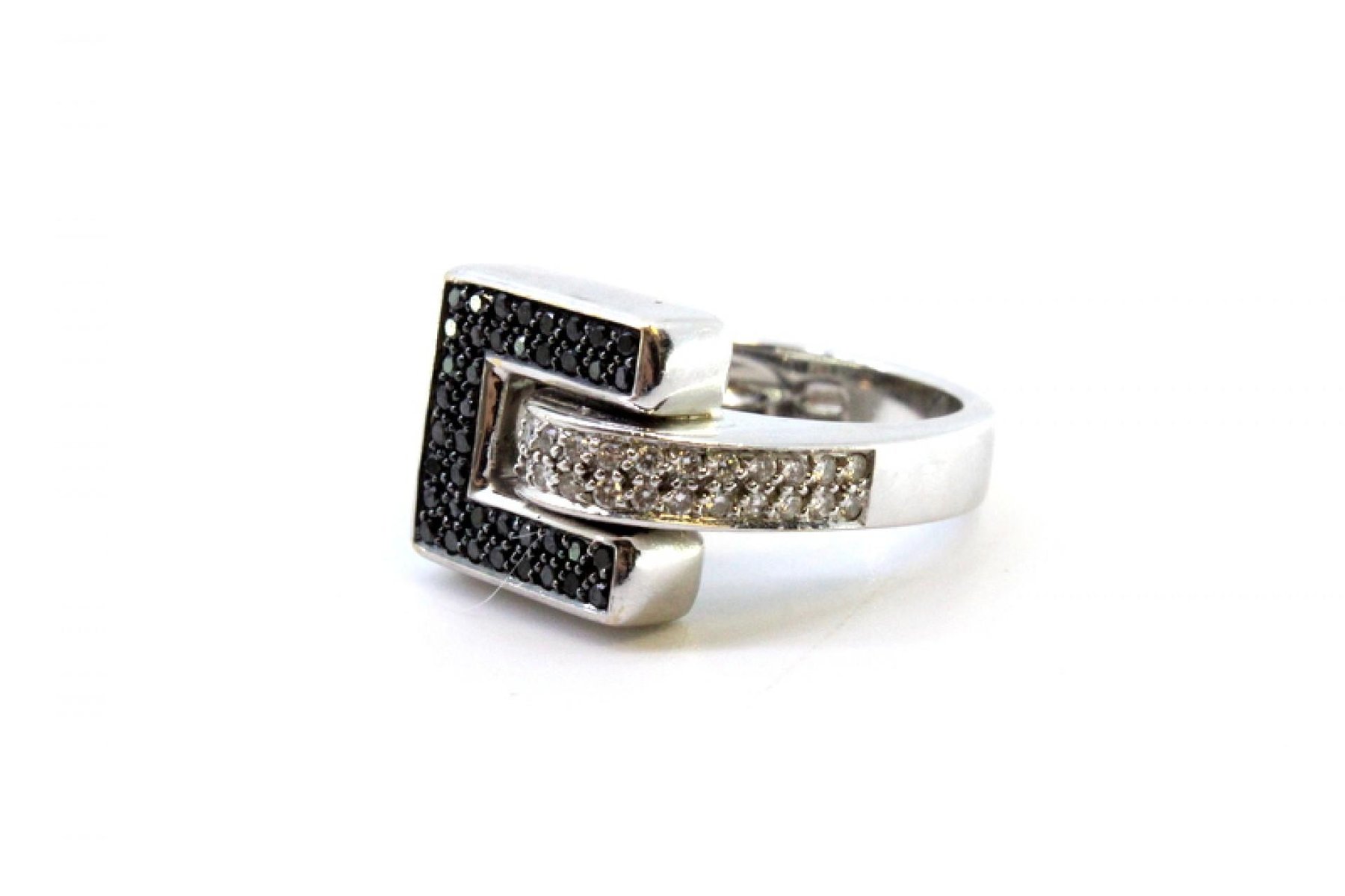 White Gold Ring with Brilliant-Cut White and Black Diamonds