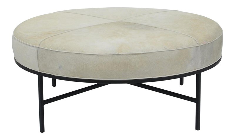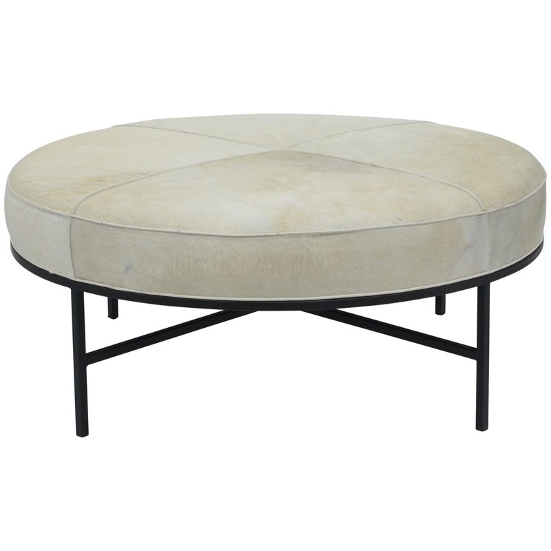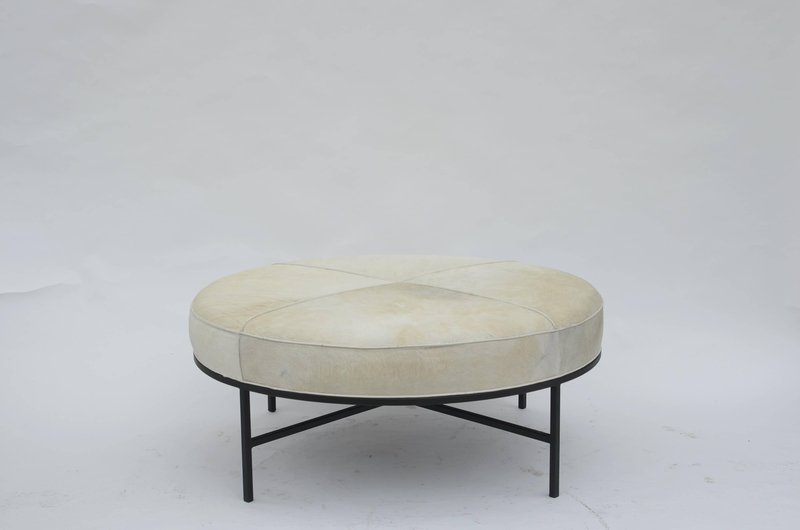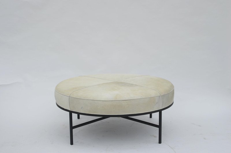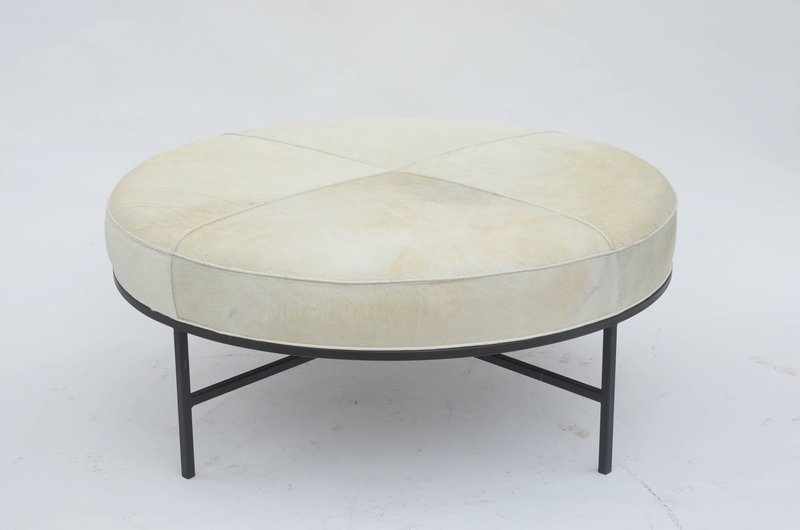 White Hide and Blackened Steel Tambour Ottoman by Atelier Cabanel
