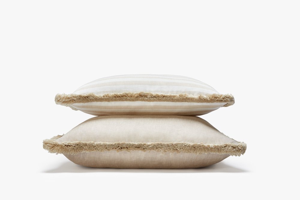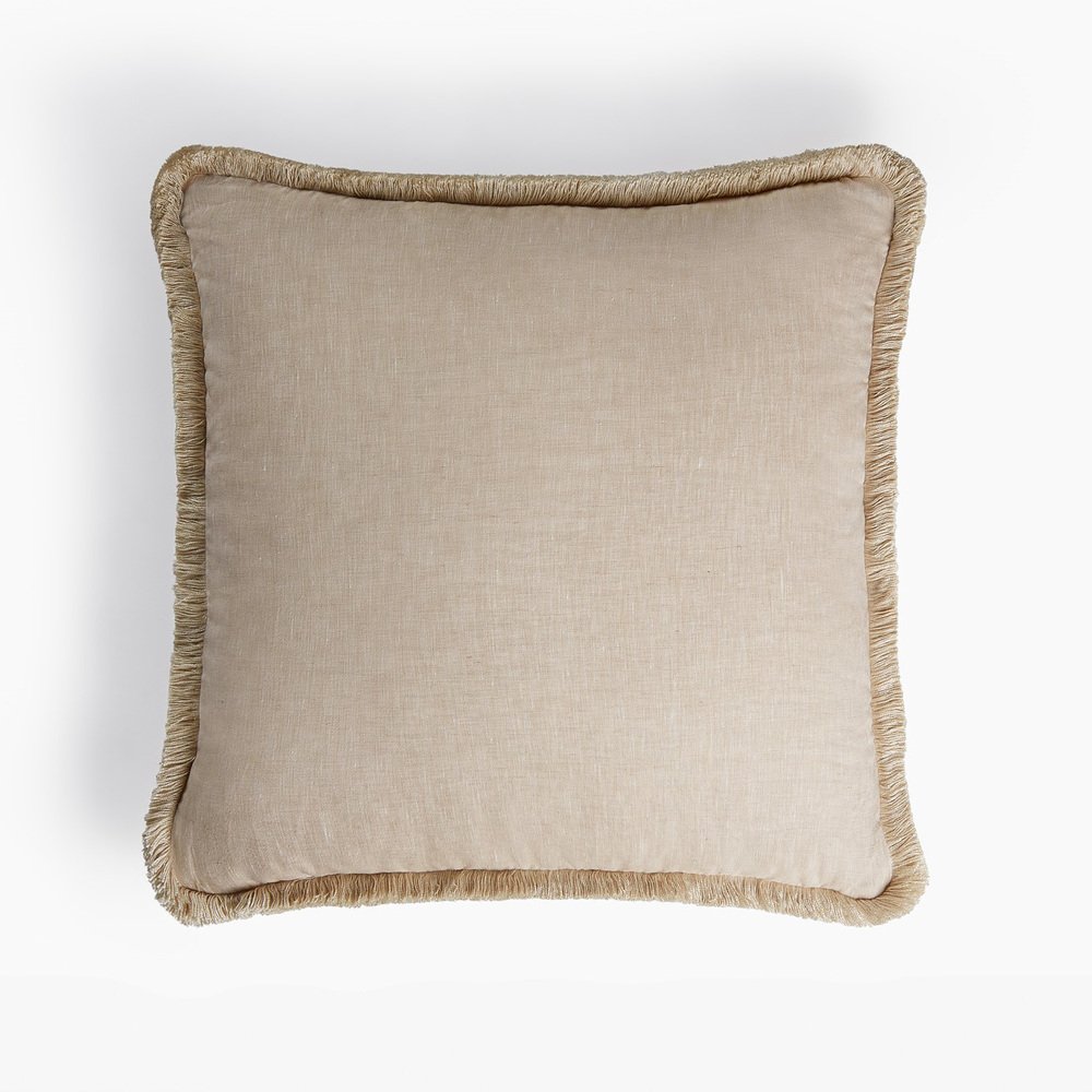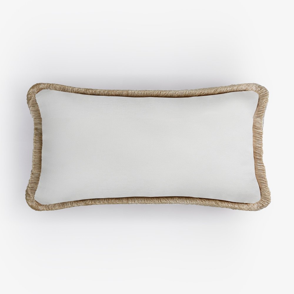 White with Beige Fringes Happy Linen Pillow by LO DECOR for Lorenza Briola