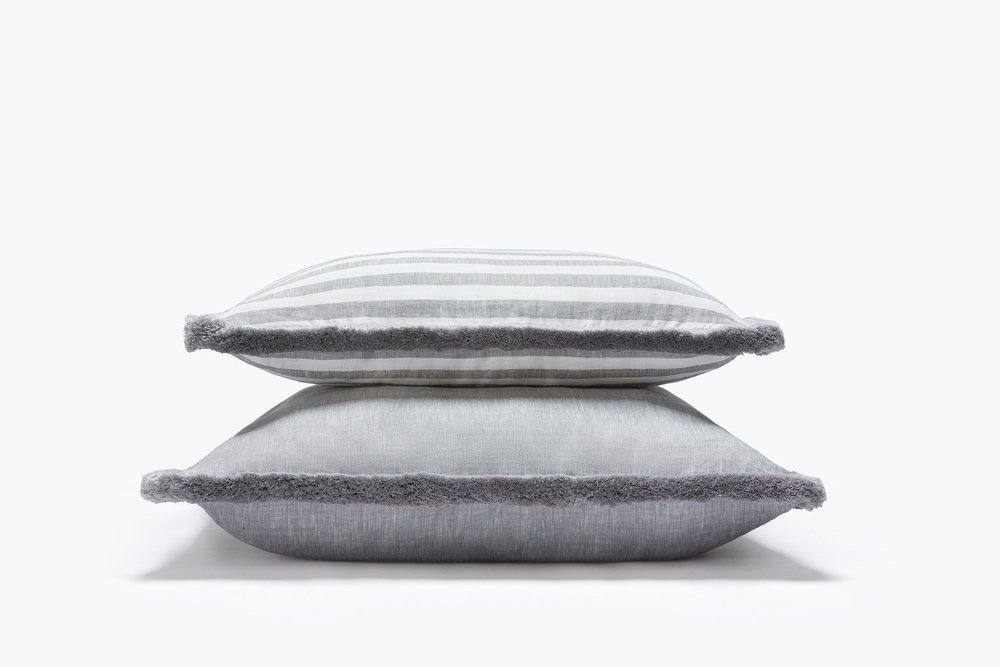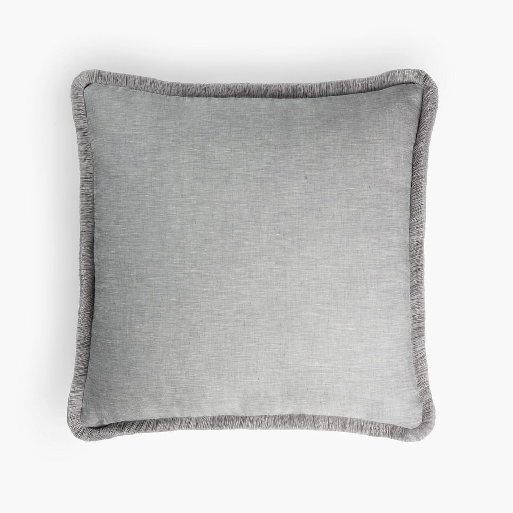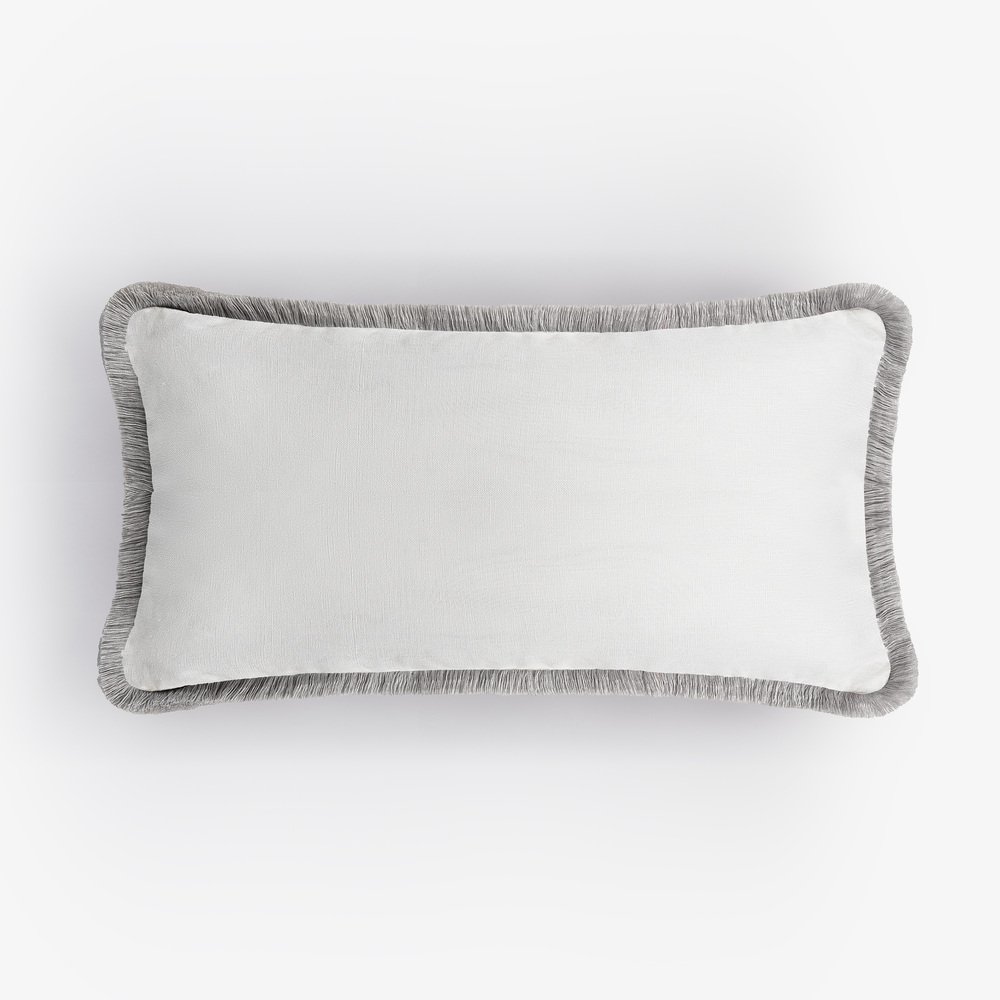 White with Grey Fringes Happy Linen Pillow by LO DECOR for Lorenza Briola