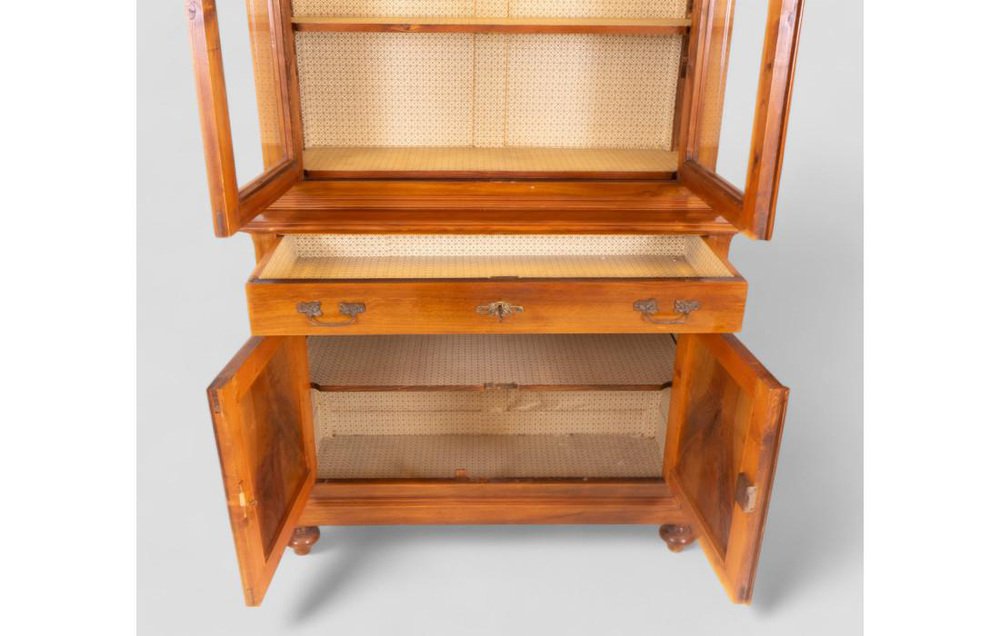 Wood Cabinet with Hutch and Glass Doors
