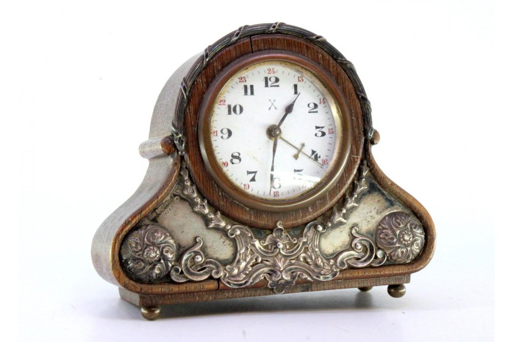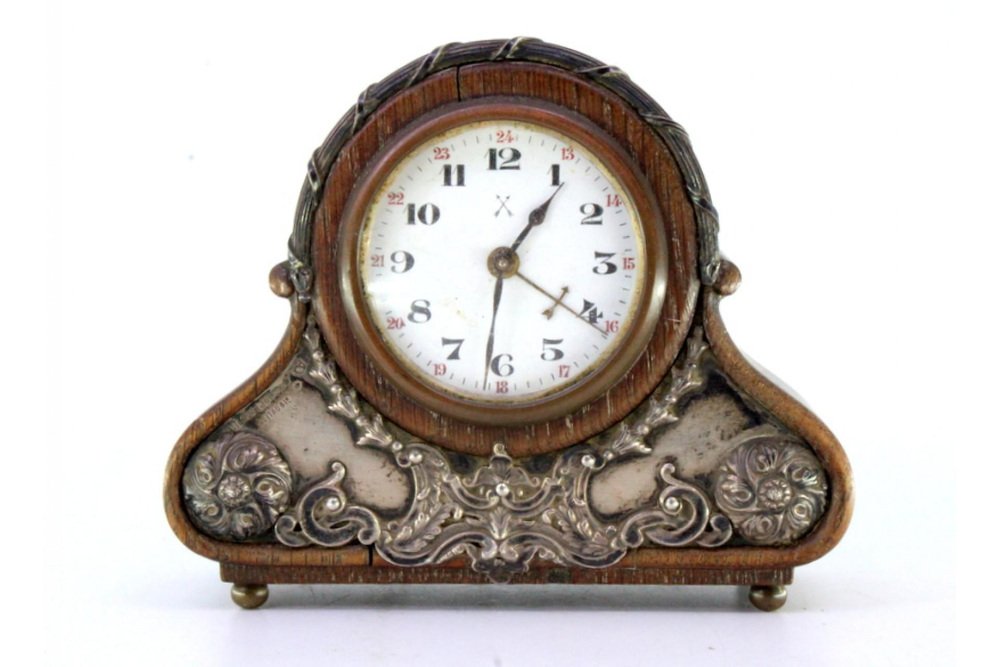 Wooden Alarm Clock with Silver Applications