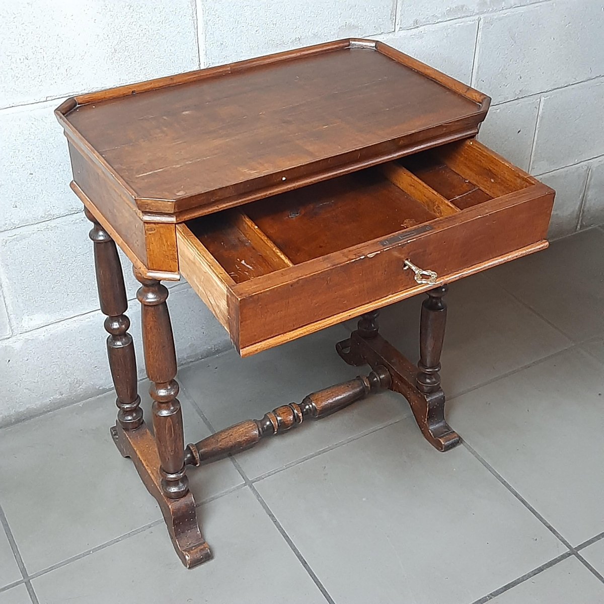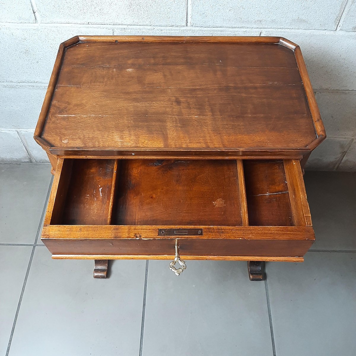 Wooden Coffee Table with Drawer, 1900