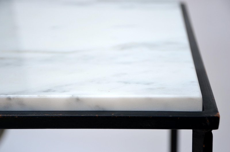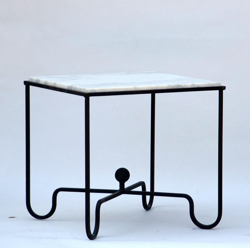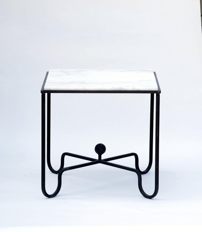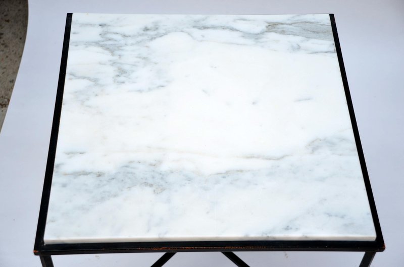 Wrought Iron and Marble Entretoise Side Table by Atelier Cabanel